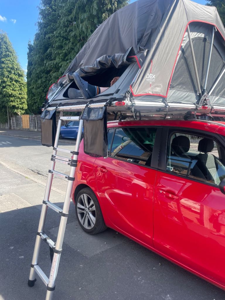 Like new never used had this put on the car roof last year never got to use it only opening up out side of house due to car engine going we took it off car stored it away gathering dust so will come with roof bars which we paid £160 roof bars will fit car with roof rails