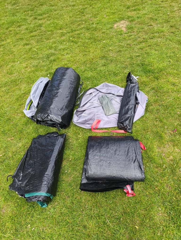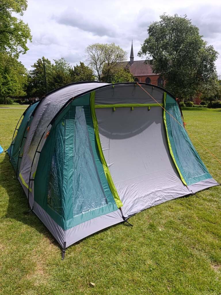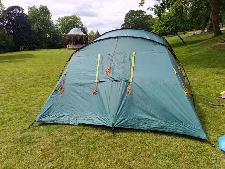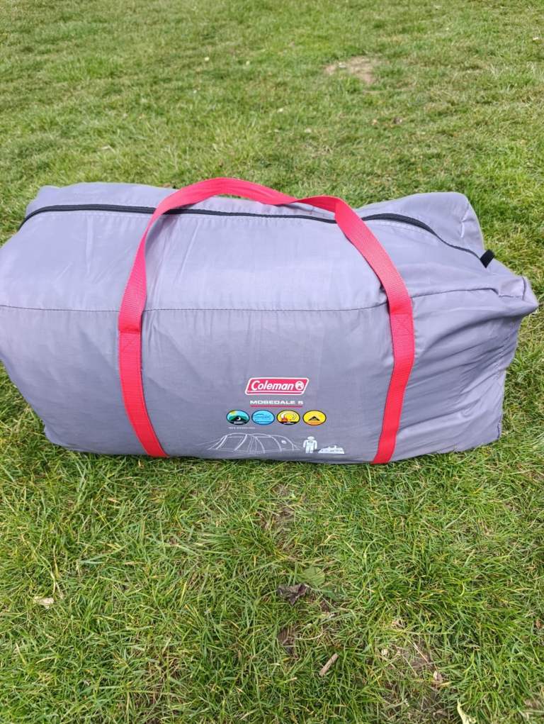 Coleman Mosdale 5 in good condition. The tent has been used and it has some marks, which I believe will come out with a good clean. There is no mold or rips or anything like that. One of the bag's handles is missing. Comes with a footprint. Can send a lot more photos and a video if you are genuinely interested.
