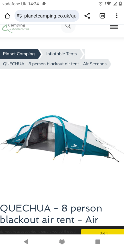 Outwell Hartford XXL tent. Sleeps 12 plus. Poles and pegs included. Some zips need careful zipping. Sold as seen.