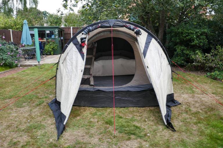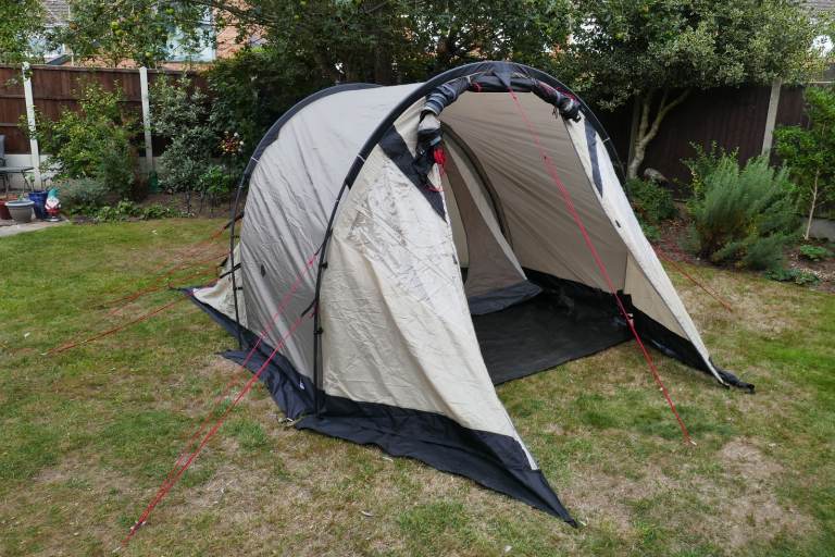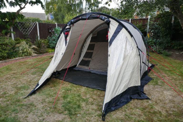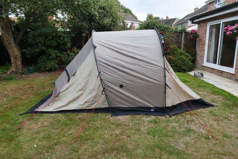 Robens Twilight Dreamer Tent, used, good condition. The tent is descibed as a 4 person tent, probably more comfortable for 2-3 people. Hydrotex 5000 fabric, taped seams, with internal sleeping compartment and groundsheet. The tent has been stored in a cool, dry garage for the last 6 years and not used. On the left hand side there is a patched repair (pic 17), and also a small hole (pic 18). The mud valance on the right hand side is ripped (pic 19) and a small tear in the webbing round the internal compartment (pic 20)