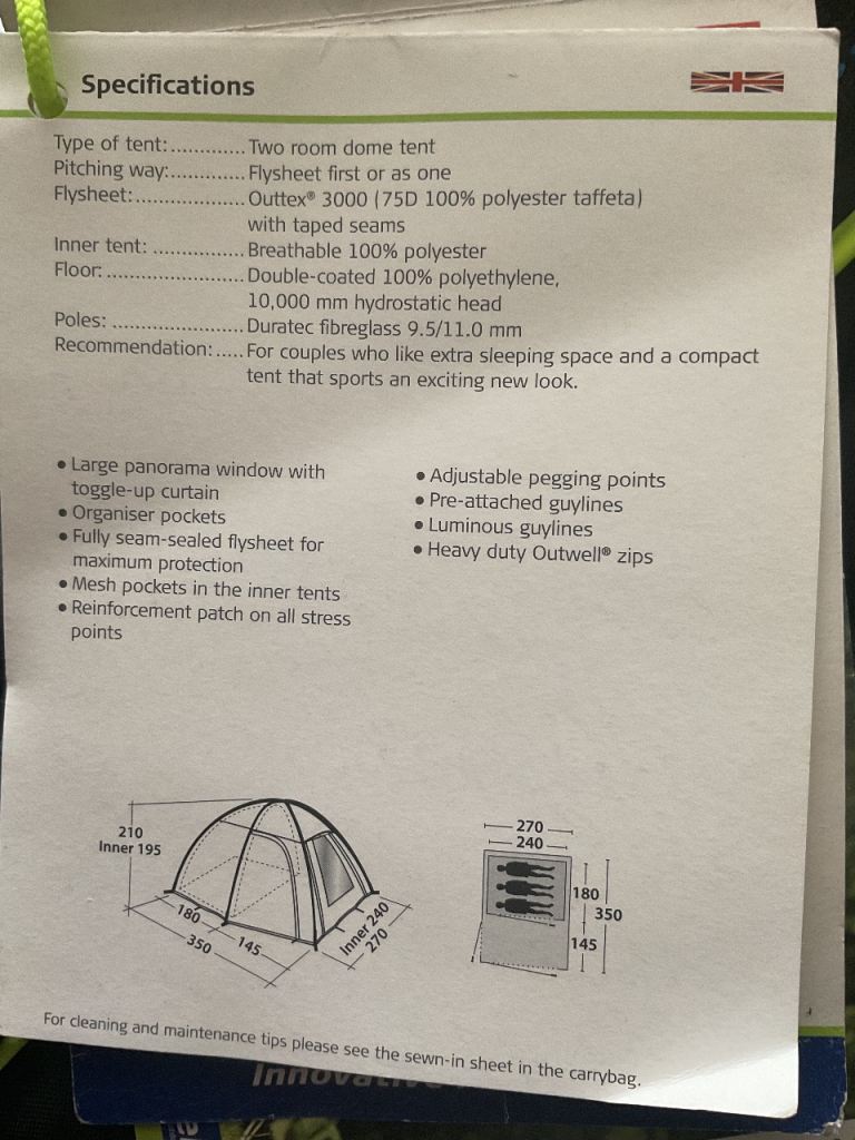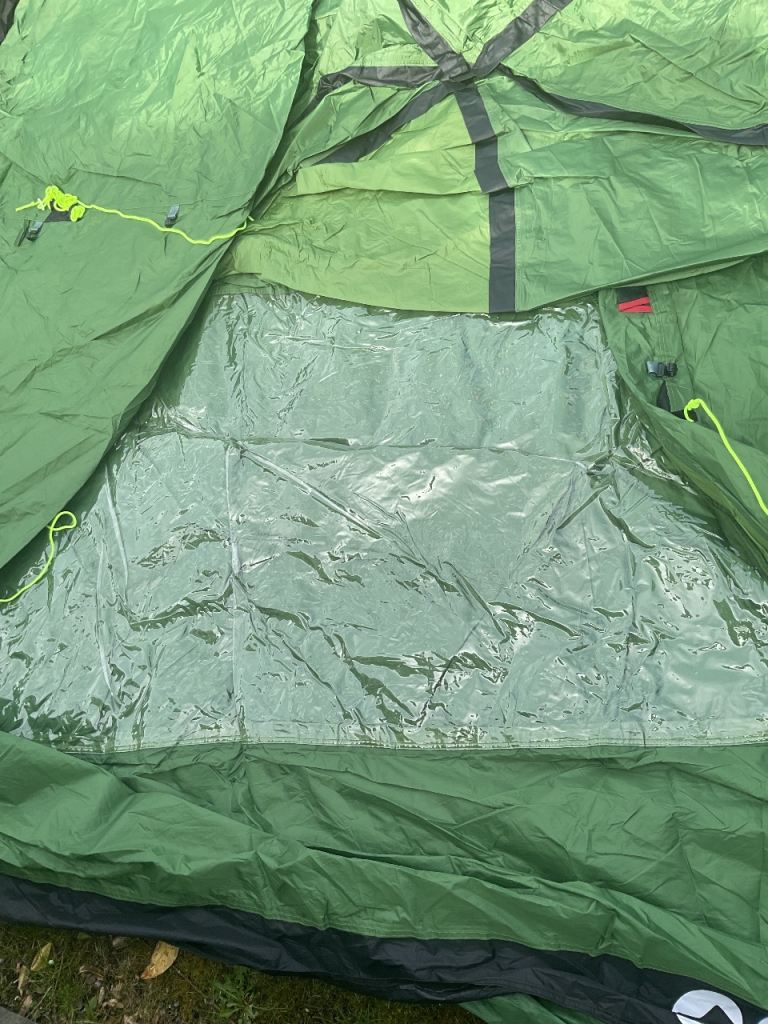 The tent has been opened out in our garden for show only. The tent has not been used as shown in the photos.