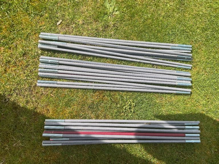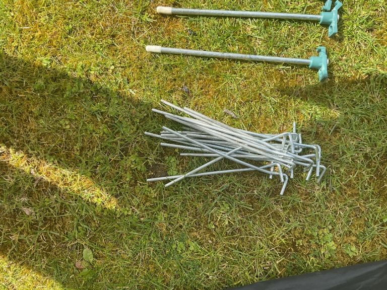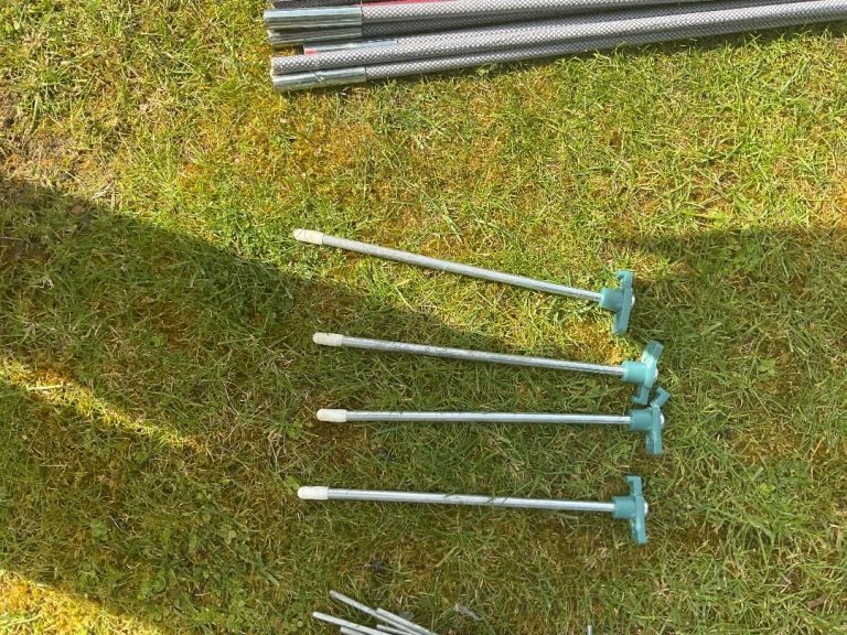 Comes with 3 sets of duratec fibreglass rods and 10 tent pegs.