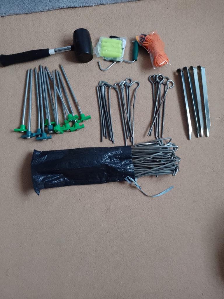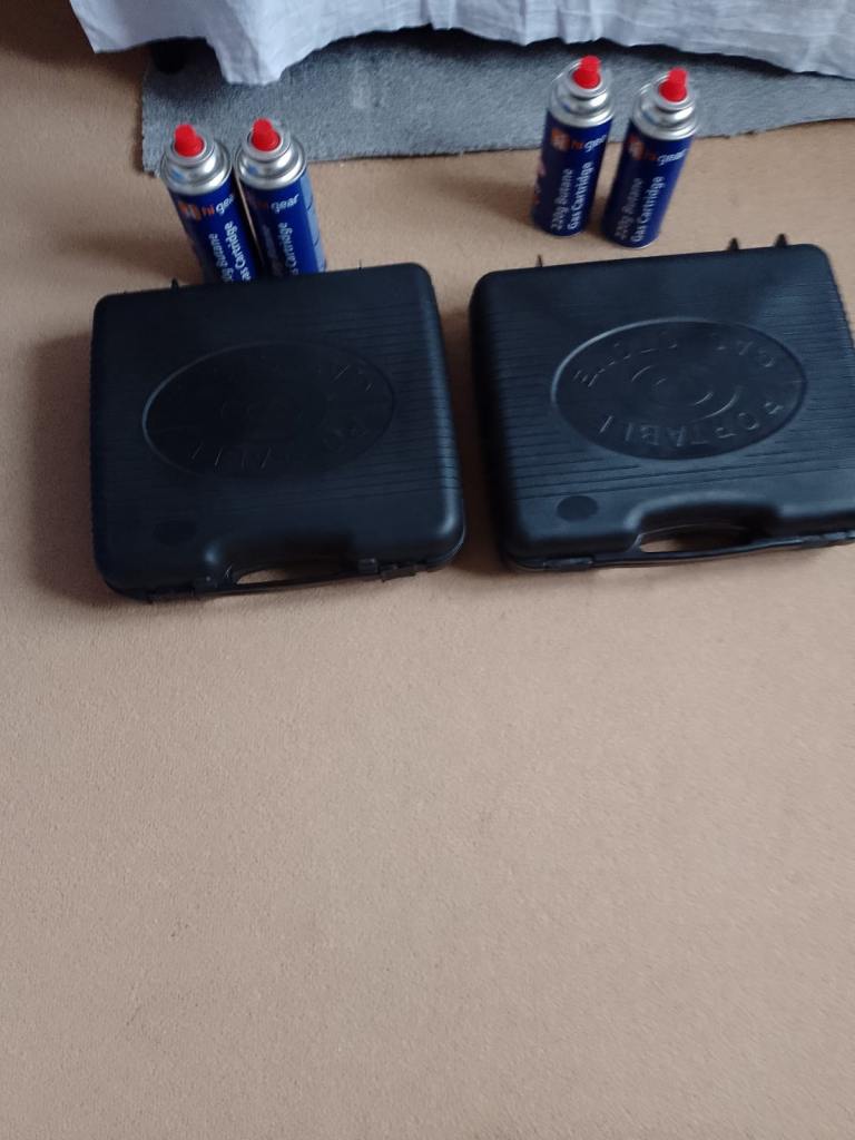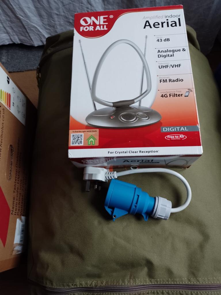 2 portable Stoves, cooker windshield, very large coolbox, digital aerial, water carriers, 2x windshields, plug socket,