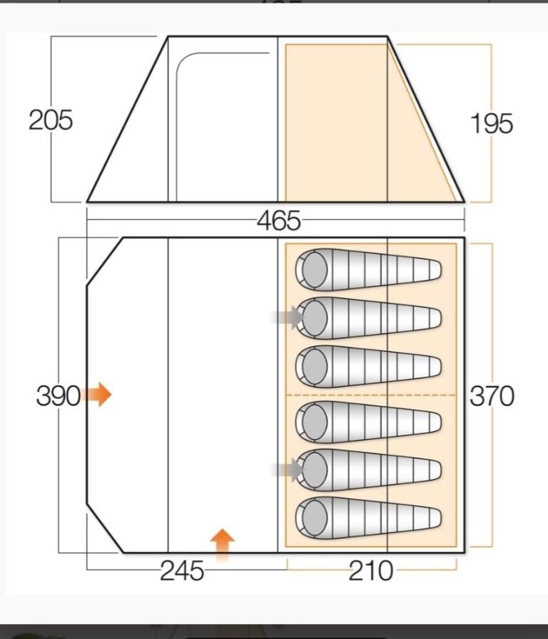 Vango Isis 6 birth tent, now Iris. Breathable inner tent with removable divider. Each side has it's own entrance door.
