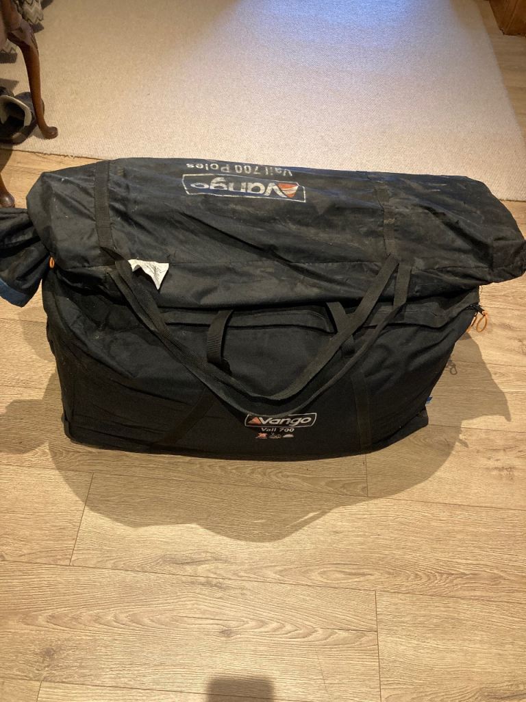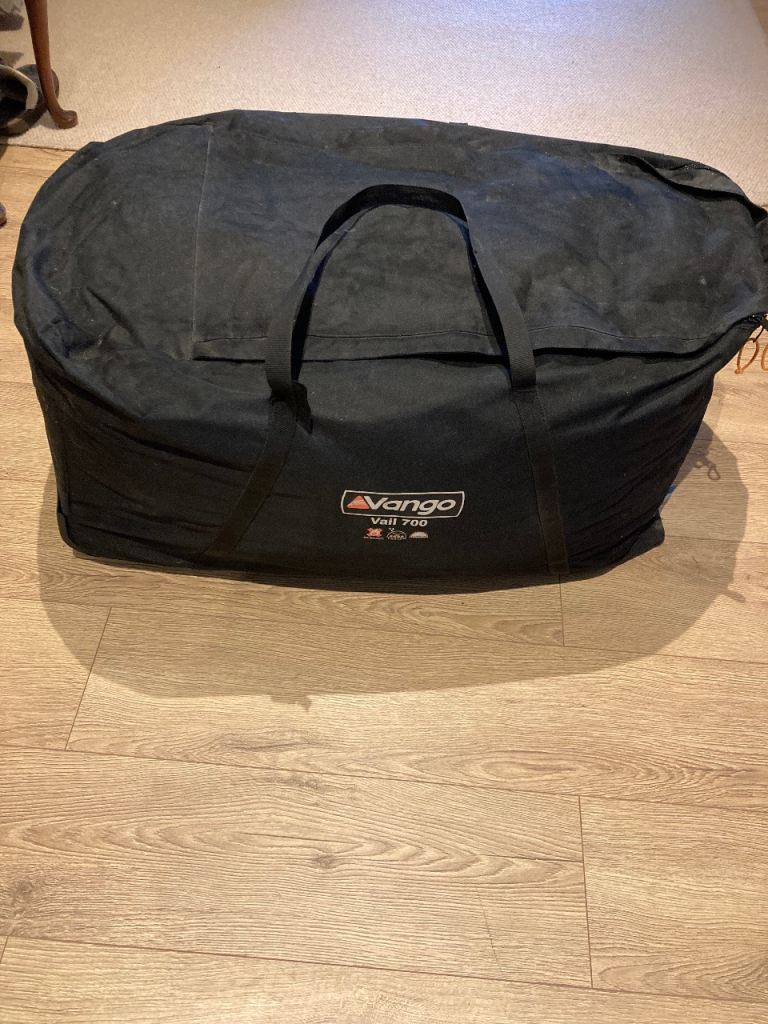 Vango Vail 700 Tent. Easily sleeps 6-7 in three large bedroom compartments. Large living area and canopy at the front. Built in ground sheet and tent tidy. Used appropriately 8 times and in excellent condition. Large tent but easily manageable to erect with two people.