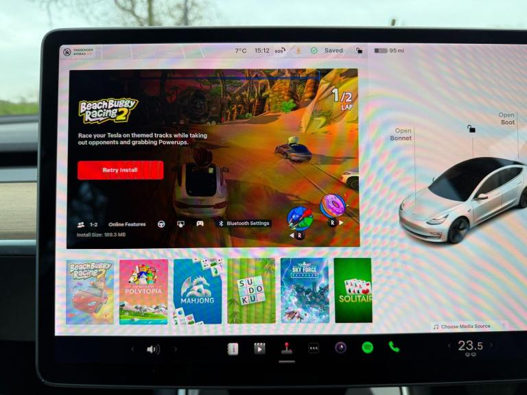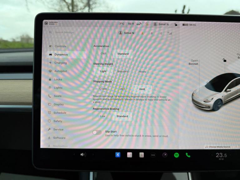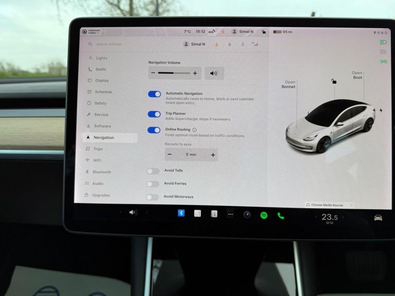 This 2020 Tesla Model 3 Long Range boasts a clear vehicle history and has had only one owner from new. As an electric vehicle with Four Wheel Drive, it features a 78 kWh battery offering a maximum range of 348 miles when new. This Model 3 also comes equipped with a fixed panoramic glass roof, adaptive cruise control, front parking sensors, a park assist camera, and Bluetooth connectivity.The Long Range variant of this Tesla Model 3 is designed for impressive performance and convenience. Its ability to charge from empty to 80% in just 26 minutes at a public charging station, or fully charge at home in approximately 12 hours using a 7kW charger, highlights its practicality for everyday use. The substantial 348 mile range further sets it apart, offering greater freedom and fewer charging stops compared to many other electric vehicles.