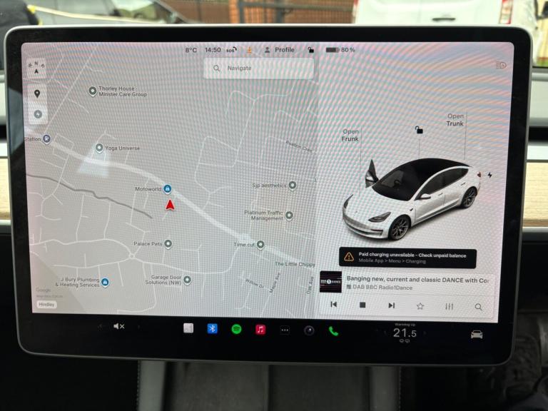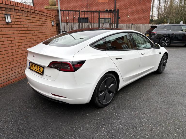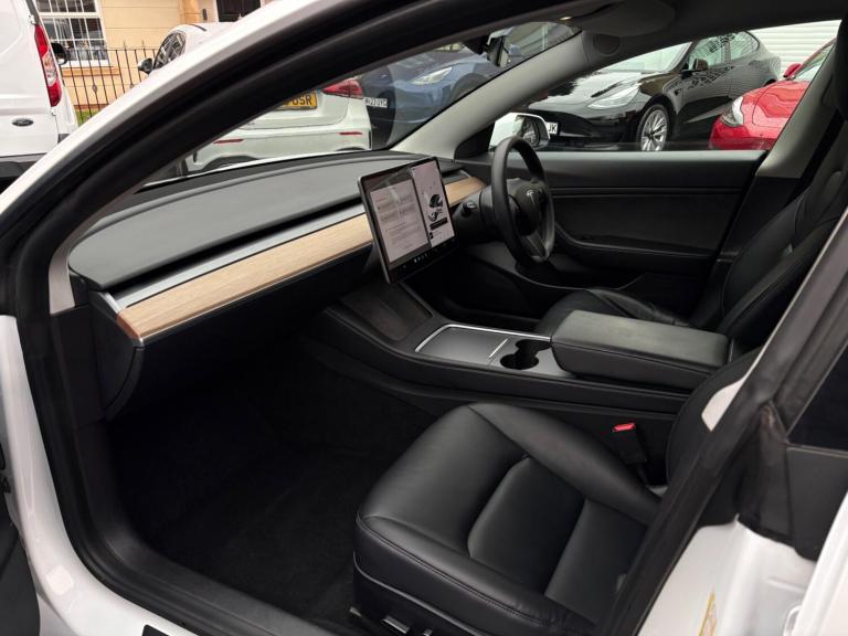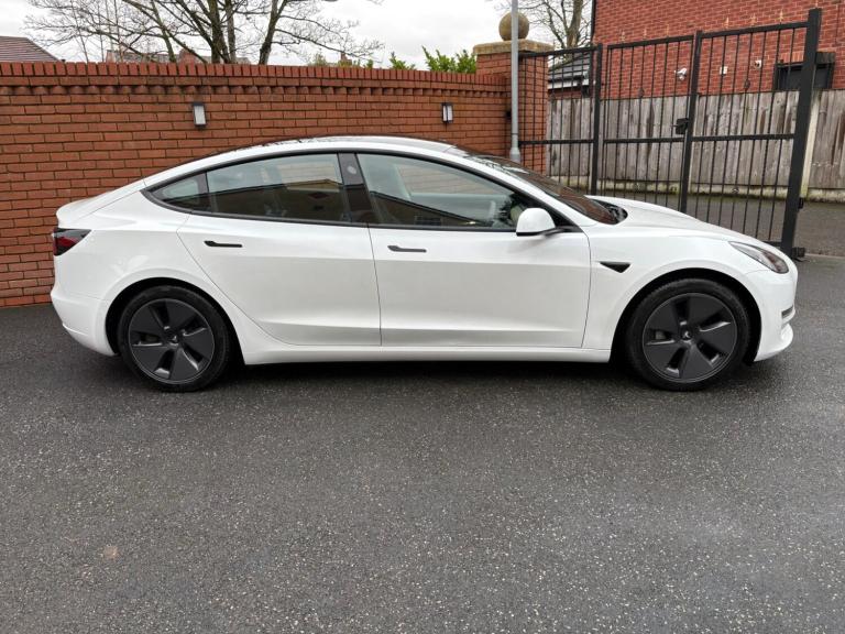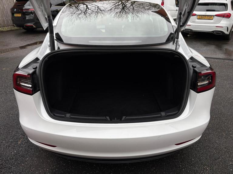 93% Battery SOH with Certificate! Heat Pump model with Matrix headlights, Electric Tailgate, Double glazed glass and alcantara charging pads. This Tesla Model 3 Long Range has had only one owner since new, offering a superb electric driving experience. As a Long Range variant, it boasts a substantial 78 kWh battery, providing an impressive maximum range of 360 miles when new. This four wheel drive electric vehicle also features a large boot space, perfect for all your needs. For convenience and safety, it comes equipped with Bluetooth connectivity, adaptive cruise control, front parking sensors, keyless go, and blind spot information.The performance of this Model 3 is truly remarkable, with a rapid 0-60mph acceleration time of just 4.2 seconds, demonstrating its superior capability compared to other vehicles in its class. Recharging is straightforward, taking approximately 12 hours for a full charge at home using a 7kW charger, while rapid public charging can take you from empty to 80% in as little as 26 minutes, ensuring you can get back on the road quickly.