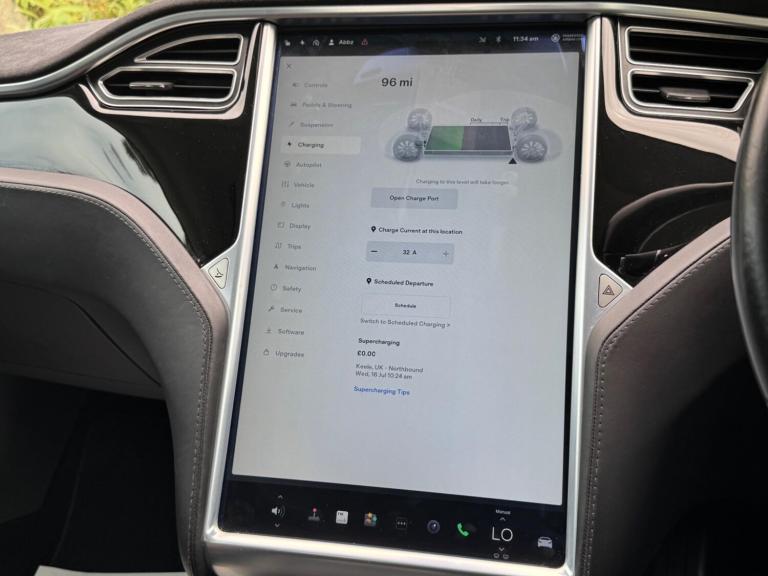 UNLIMITED FREE SUPERCHARGING 3 FORMER KEEPERSLOGBOOKAudio - Ultra High Fidelity SoundVery rareValuablePanoramic RoofRareAutoPilotRareValuableSmart Air SuspensionRareValuable21in Alloy Wheels - Turbine - GreyVery rareThis 2015 Tesla Model S 85 comes with a clear vehicle history check for added peace of mind. As an all-electric vehicle, it offers a modern driving experience. The car is equipped with desirable features such as AutoPilot, which includes Adaptive Cruise Control, and Smart Air Suspension for a smooth ride. The Ultra High Fidelity Sound system ensures an immersive audio experience. It also comes with two sets of 21in Alloy Wheels, including a Turbine Silver set and a Pirelli Winter Wheel Set, providing flexibility for different driving conditions.The Tesla Model S boasts a large boot space, making it more practical than similar vehicles. With a battery total capacity of 82 kWh, it had a maximum range of 305 miles when new. Charging at home using a 7kW charger takes around 12 hours, while the fastest public charging time from empty to 80% is just 43 minutes. Acceleration is impressive, reaching 0-60mph in 5.4 seconds, demonstrating its performance capabilities. Currently shows “Free Unlimited Supercharging” in Tesla account at the time of listing.This feature is provided solely by Tesla and is subject to their terms, conditions, and continued operation.Availability of this benefit after purchase is not guaranteed by the seller.