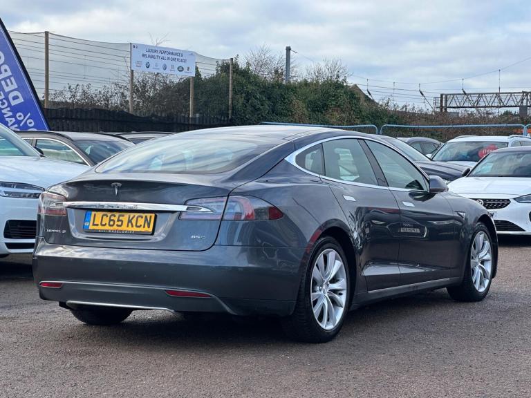 2015 Tesla Model S 85D High-Spec 2 Owners 2 Keys Pan Roof Long Range EV Key Features Charge Cable Type 2 Charge Cable 3 Pin Navigation HDD Parking Sensor(s) Climate Control Leather Trim / Synthetic Leather 19'' Alloy Wheels Panoramic Glass Roof Metallic Paint Comes with 2 Keys Vehicle OverviewThis 2015 Tesla Model S 85D offers a premium electric driving experience with only two previous owners and a wealth of advanced features. Powered by an impressive 82 kWh battery, it delivers a 305-mile range (when new) and benefits from four-wheel drive, providing outstanding traction and stability in all conditions.Charging is simple and flexible: Home charging (7kW): 12 hours for a full charge Rapid public charging: 080% in 43 minutesInside, comfort and safety are taken care of with: Heated Front Seats Automatic Headlights Blind Spot Warning Dual-Zone Climate Control Rear Parking Sensors & Assistance Why This Model Stands Out 060 mph in just 5.2 seconds instant electric performance Large boot space perfect for families, travel or daily practicality Zero-emission driving smooth, quiet, and eco-friendly Low running costs compared to petrol/diesel alternativesThis Tesla Model S 85D combines long-range electric capability, luxury features, and exhilarating performance a standout choice for anyone seeking a high-spec, well-maintained EV. ADDED BENEFITS: 3 MONTHS WARRANTY EXTENDABLE UP TO 3 YEARS 12 MONTHS AA BREAKDOWN COVER 0 DEPOSIT FINANCE AVAILABLE CALL OR MESSAGE [Phone number removed] TO ARRANGE A VIEWING OR TEST DRIVE!