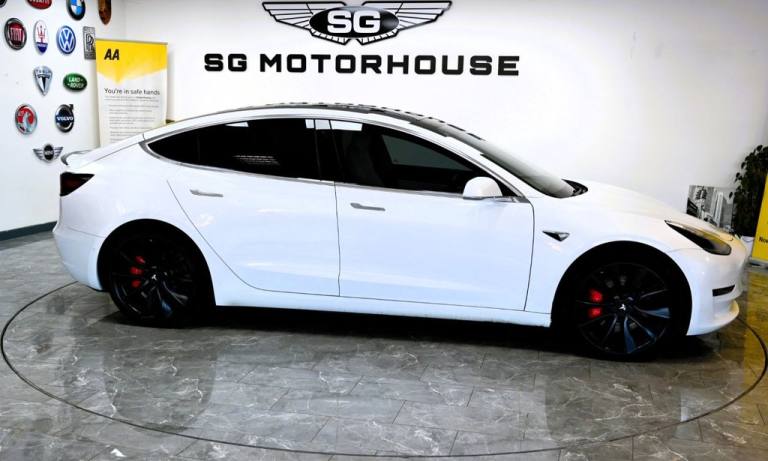 TOP SPEC - TESLA MODEL 3 PERFORMANCE 449 BHP 2 CAREFUL OWNER FROM NEW + AUTO PILOT + PANORAMIC ROOF + SATELLITE NAVIGATION + MULTI 360 CAMERAS ( SIDE AND REVERSE) + FULL LEATHER INTERIOR + HEATED SEATS + AUTOMATIC GEARBOX + CRUISE CONTROL + PARKING AID + STEERING CONTROLS + TESLA AUDIO / BLUETOOTH / BT AUDIO / DAB RADIO + LANE ASSIST + ELECTRIC WINDOWS AND FOLDING MIRRORS + ALLOY WHEELS CHECKED & INSPECTED + 12 MONTHS MOT FREE 6 MONTHS NATIONWIDE WARRANTY (PARTS & LABOUR) +++ FREE 12 MONTHS AA BREAKDOWN COVER 0% DEPOSIT FINANCE AVAILABLE ALL HPI CLEAR ++++ ANY P/X WELCOME. Road Tax Opt, We accept all major CREDIT & DEBIT Cards, 5 Days Drive Away Insurance OPTIONAL, Located 5 Mins from Hoddesdon OR Broxbourne Train Station, 21 High Street, EN11 8SX RESERVE ANY CAR FOR ONLY £100 - DEPOSIT FULLY REFUNDABLE SUBJECT TO VIEWING .12-Way Power Adjustable Front and Rear Heated Seats, 15in Touchscreen with Onboard Maps and Navigation, 2 Zone Climate Control, 20in Alloy Wheels - Performance, 3x3 Point Rear Seat Belts, 60-40 Split Folding Rear Seats, ABS - Anti-lock Braking System, Adaptive Cruise Control, Adaptive Steering, Air Conditioning, Airbags - 6, Airbags - Curtain, Airbags - Driver, Airbags - Passenger, Airbags - Side, Aluminium Alloy Pedals, Ambient - Interior Lighting, Audio Remote Control, Auto Dimming - Power Folding - Heated Side Mirrors, Automated High-Beam Assist, Automatic Emergency Braking, Autopilot Function, Blind Spot Information, Bluetooth Connection, Body Coloured Bumpers, Carbon Fibre Spoiler, Centre Console with Storage - 4 USB Ports and Docking for 2 Smartphones, Collision Avoidance, Custom Driver Profiles, Daytime Running Lights - LED, Digital Radio, DVD, Electric Hinged Side Doors - Front, Electric Hinged Side Doors - Rear, Electrically Adjustable Drivers Seat, Electrically Adjustable Passenger Seat, Electrically Adjustable Steering Column - Tilt-Telescopic, Electronic Stability Control and Traction Control, Fixed Panoramic Glass Roof, Front Armrest, Front Cross Traffic Camera, Front Electric Windows, Front Fog Lights, Front Head Restraints, Front Parking Sensor, Front Trunk and Interior Floor Mats, Height Adjustable Drivers Seat, In-Car Internet Streaming Music and Media, Interior Carpeting, Internet Browser, Internet Connection, Isofix Child Seat Anchor Points, Keyless Entry and Remote Control with App, Keyless Go, Lane Departure Warning, LED Foglights, LED Headlights, Location-Aware Automatic Garage Door Opener, Map and Reading Lights, Media Storage, Mobile Phone App Interface, Navigation System, Non-Safety-Critical Software Updates over Cellular, OEM Sound System, Park Assist Camera, Performance Brake Calipers, Power Steering - Speed Sensitive, Premium Audio - 14 Speakers - 1 Subwoofer - 2 Amps and Immersive Sound, Radio - AM-FM - Internet Streaming, Rear Cross Traffic Camera, Rear Electric Windows, Rear Headrests, Rear Parking Sensor, Remote Central Locking, Reverse Parking Aid, Satellite-View Maps with Live Traffic Visualisation and Navigation, Seats - Heated Front, Service Indicator, Software Updates over WIFI, Steer-By-Wire Technology, Steering Wheel Mounted Controls, Telephone, Tinted Glass Roof with Ultraviolet and Infrared Protection, Track Mode, Traction Control, Traffic Sign Recognition, Trip Computer, Type 2 Public Charging Connector, Tyre Press