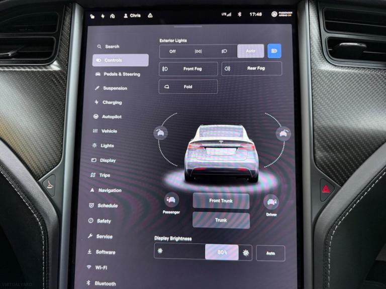 EPS Cars brings you this Tesla P100D with a full service history and MOT valid until October 2026, this 2019 Tesla Model X P100DL offers a compelling blend of performance and practicality. This electric, four wheel drive SUV boasts a substantial 102 kWh battery, providing an impressive maximum range of 336 miles when new. It comfortably seats seven occupants and features a large boot space for all your needs. Notable features include striking Tesla Red Brake Calipers, an Active Spoiler for enhanced aerodynamics, and a Carbon Fibre Upgrade. Inside, you'll find Dual Zone Climate Control to ensure comfort for all passengers.brbrThis Model X is equipped with the Ludicrous Speed Upgrade, allowing for breathtaking acceleration from 0 to 60 mph in just 2.9 seconds, a performance that sets it apart from many other vehicles. Charging is convenient, with a full charge at home taking approximately 15 hours and 30 minutes using a 7kW charger, while rapid charging to 80% can be achieved in as little as 43 minutes at a public charging station. The vehicle also offers a significant towing weight of 2268 kg. This particular example comes with a clear vehicle history check and is offered with a 6 month warranty, having last been serviced at 58,000 miles on 20 September 2025.brbrFull Options Include: Airbags, Cruise Control, Adaptive Cruise Control, Pedestrian Detection System, Fog Lights, Automatic Lights, LED Daytime Running Lights, Emergency Braking System, Antilock Braking System, Central Locking, Tyre Pressure Monitoring System, Isofix Child Seat Mounting System, Parking Sensors Front, Parking Sensors Rear, Electronic Stability Control, Distance Monitoring System, Anti Slip Control, All Wheel Drive, Automatic Windscreen Wipers, Active Suspension, Panoramic Camera, Rear View Camera, Automatic Lane Detection, Alarm, Immobiliser, Tracker, Wifi, DAB Radio, Premium Audio, Bluetooth Audio, Voice Control, Satellite Navigation, MP3, Bluetooth Telephone, USB Audio, Multi Function Steering Wheel, Power Steering, Electric Windows, Electric Mirrors, Heated Mirrors, Keyless Start, Keyless Entry, Start/Stop, Hill Start, Tinted Windows, Air Conditioning, Climate Control, Dual Zone Climate Control, Heated Steering Wheel, Electric Boot, Sports Seats, Electrically Adjustable Seats, Leather Seats, Heated Seats, Panoramic Sunroof, Sports Pack, Alloy Wheels.brbrBuying from EPS Cars Limited ensures flexibility and convenience, offering video viewings, collection appointments,