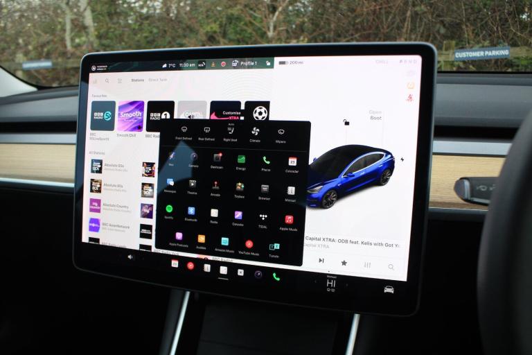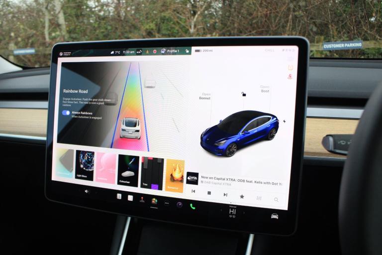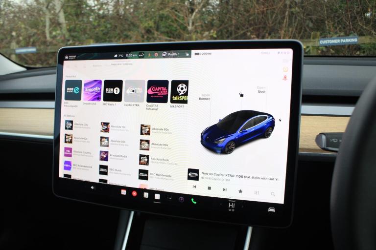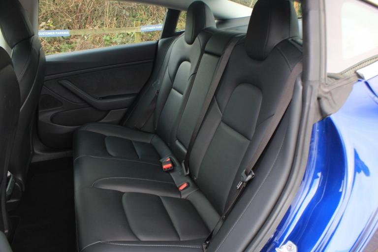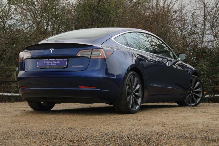 OVER 200 VEHICLES IN GROUP STOCK. Finished in metallic blue with full black premium engineered material interior. Features include fixed panoramic glass sunroof, 15-inch touchscreen with satellite navigation, 20” Performance alloy wheels, front and rear park distance control with rear and side view cameras, 12-way electric front seats, heated front and rear seats, digital climate control with automatic air conditioning, bluetooth connectivity with media streaming, DAB digital radio, LED headlights with LED daytime running lights, rain sensor, adaptive cruise control, autopilot function, blind spot monitor, traffic sign recognition, lane departure warning, collision avoidance, electric folding exterior mirrors, keyless start, toybox and arcade features, carbon fibre spoiler, Performance brake system with red calipers, multifunctional leather steering wheel, automatic transmission plus much more standard specification. This Model 3 Performance is offered in excellent condition having covered 57300 miles from new by its 1 owner. GOOGLE YORKSHIRE VEHICLE SOLUTIONS FOR OUR CUSTOMER REVIEWS. PLEASE CALL OR E-MAIL FOR FURTHER DETAILS OR TO ARRANGE A PERSONALISED VIDEO OR VIEWING.
