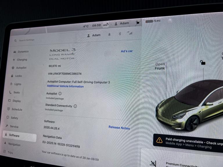 This 2021 Tesla Model 3 (Dual Motor) Long Range Saloon 4dr Electric Auto 4WDE (346 ps) has a mileage of 90970 and comes with an MOT that expires on 02/12/2026. With 5 seats and 4 doors, this electric car is ULEZ compliant and perfect for urban driving. Its features include 12-Way Power Adjustable Front and Rear Heated Seats, 2 Zone Climate Control, 60-40 Split Folding Rear Seats, Air Conditioning, and Ambient - Interior Lighting. This sleek and efficient saloon is ideal for those looking for a stylish and environmentally friendly vehicle. Features Include: , 12-way power adjustable front and rear heated seats, 2 zone climate control, 60-40 split folding rear seats, air conditioning, ambient - interior lighting, centre console with storage - 4 usb ports and docking for 2 smartphones, electrically adjustable drivers seat, electrically adjustable passenger seat, electrically adjustable steering column - tilt-telescopic, front armrest, front head restraints, graphite finish seat controls, heated steering wheel, height adjustable drivers seat, interior carpeting, interior floor mats, location-aware automatic garage door opener, map and reading lights, matt finish trim, metalised scroll wheels - steering wheel, powerlift trunk, rear headrests, satellite-view maps with live traffic visualisation and navigation, satin black sill plates, seats - heated front, seats - heated rear, software updates over wifi, steering wheel mounted controls, telephone, 15in touchscreen with onboard maps and navigation, additional usb-a port - glove compartment, audio remote control, bluetooth connection, dvd, digital radio, in-car internet streaming music and media, inductive charging mats - two smartphones, internet browser, internet connection, media storage, mobile phone app interface, navigation system, non-safety-critical software updates over cellular, oem sound system, premium audio - 14 speakers - 1 subwoofer - 2 amps and immersive sound, radio - am-fm - internet streaming, two additional usb-c port, usb-ipod interface, wi-fi and lte internet connectivity, 18in alloy wheels - aero, auto dimming - power folding - heated side mirrors, body coloured bumpers, electric hinged side doors - front, electric hinged side doors - rear, exterior satin black, fixed panoramic glass roof, front electric windows, rear electric windows, tinted glass roof with ultraviolet and infrared protection, 3x3 point rear seat belts, abs - anti-lock braking system, adaptive steering, airbags - curtain,