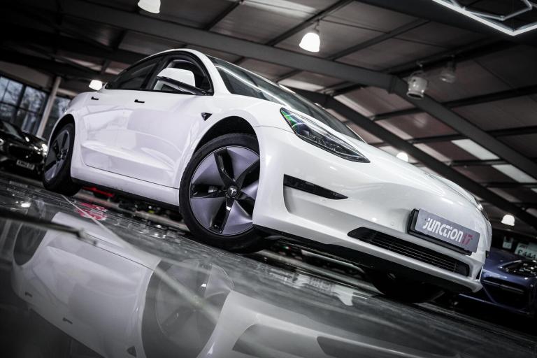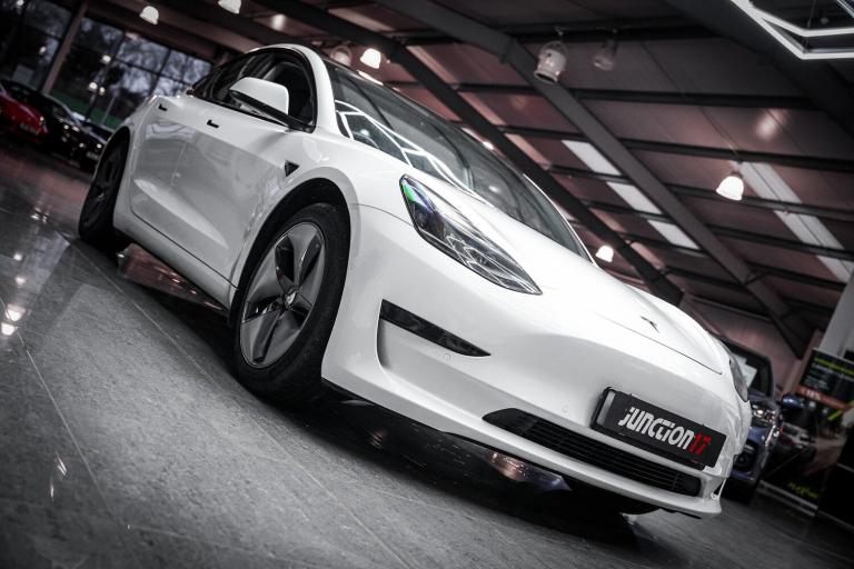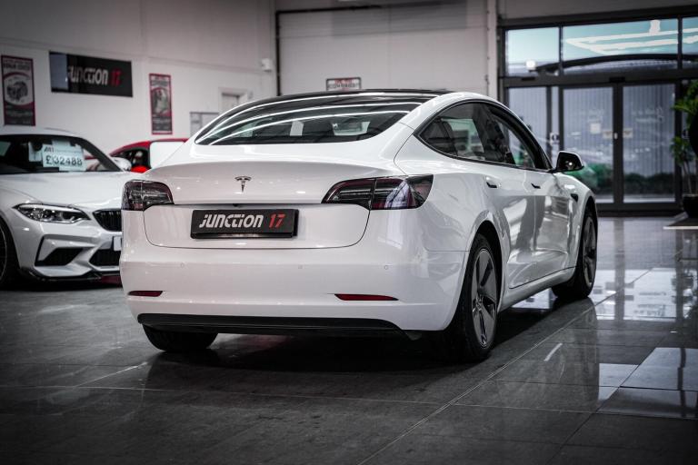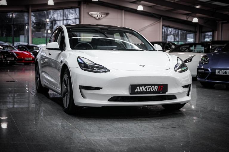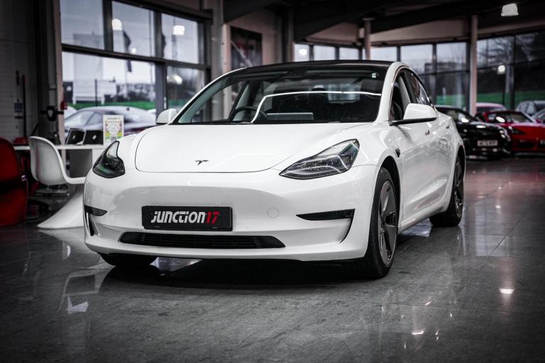 *CLICK - BUY - COLLECT* FINANCE AVAILABLE! HPI CLEAR! Junction 17 Cars now have to offer a stunning Tesla Model 3 Standard Range Plus Auto RWD 4dr.. 1 Registered Keeper from New.. Finished in Pearl White and complemented by Black Leather Upholstery.. Tinted Glass Roof with Ultraviolet and Infrared Protection.. Adaptive Cruise Control.. 18in Alloy Wheels - Aero.. Reverse Parking Aid.. Navigation.. and much more.*ANY THIRD PARTY VEHICLE INSPECTIONS ARE WELCOME* *WE WILL BEAT ANY CAR VALUATION SITE FOR YOUR PART EXCHANGE* Junction 17 Cars (Runner Up at the Motor Trader Independent Dealer Awards 2019 nominated for “Car Supermarket of the Year” Award) is a unique family run business with over £7 million’s worth of stock currently split over our purpose-built showroom in Yaxley, Peterborough and our new showrooms in Grantham and Rugby. Our vehicles can also be reserved with a £99 refundable holding deposit to ensure that they are professionally prepared/valeted for your viewing pleasure. Competitive HP and PCP packages are available with decision/approval available within 15 minutes. We also offer comprehensive warranties over a variety of different terms as well as Williams Ceramic Coating, Flexfuel Engine Carbon Cleaning and more. **NATIONWIDE DELIVERY AVAILABLE** Payment : maximum £500 card payment balance by bank transfer