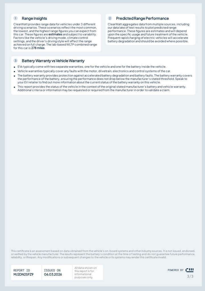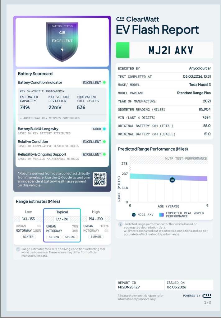 This Tesla Model 3 Standard Range Plus is a sleek and modern all-electric saloon, offering smooth performance, low running costs, and everyday practicality. As a rear-wheel-drive model with automatic transmission, it delivers a refined and effortless driving experience, making it ideal for both city use and longer journeys.Powered by Tesla’s efficient electric drivetrain, the Standard Range Plus provides responsive acceleration and quiet operation, while maintaining impressive range for daily commuting and weekend travel. The clean, minimalist cabin design centres around technology and comfort, creating a premium driving environment.We have completed a ClearWatt Battery Status Test and the results have come back as Excellent. The report can be found in the images and the key details from it are that the battery health is excellent and that the Predicted Range Performance (Miles) is 237 (WLTP). Whilst there are many factors that can influence the range including temperature, equiptment in use and driving style. Get in contact for more information. This example stands out thanks to its desirable wheel upgrade and rare specification.When new, this Model 3 was specified with the following features:-19in Alloy Wheels – Silver Sports – A very rare upgrade that enhances the car’s stance and visual presence while complementing its modern design-Standard Range Plus RWD Powertrain – Smooth, responsive electric performance with excellent efficiency-Heated Front Seats – Added comfort for colder mornings and year-round usabilityCombining Tesla’s advanced electric technology with a rare alloy wheel specification and everyday practicality, this Model 3 Standard Range Plus represents a smart and desirable entry into premium electric motoring.All part exchange welcome, with fair and instant valuations offered.If you are located further afield, we can provide a detailed walk-around video and arrange nationwide delivery at very competitive rates. Please get in touch with us for more information.