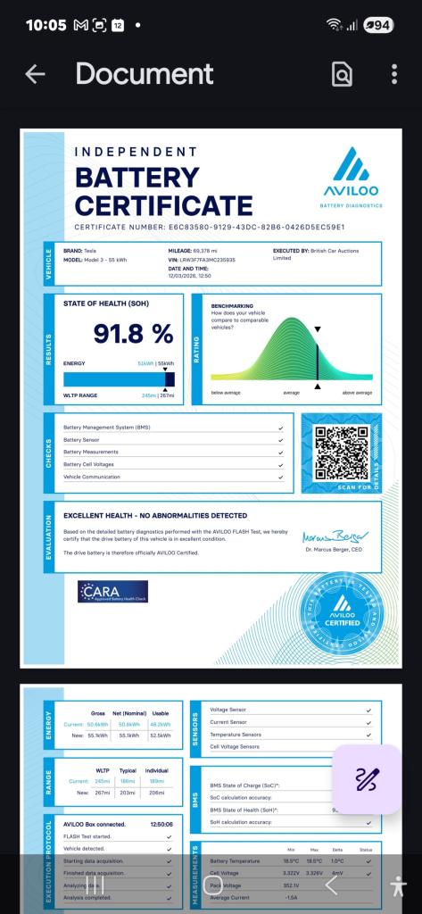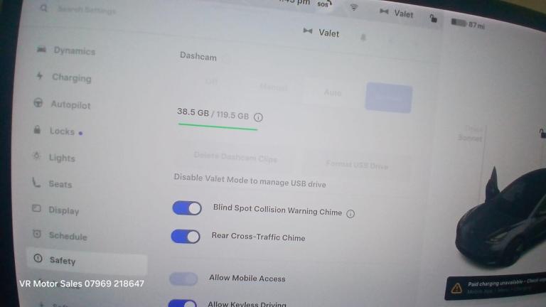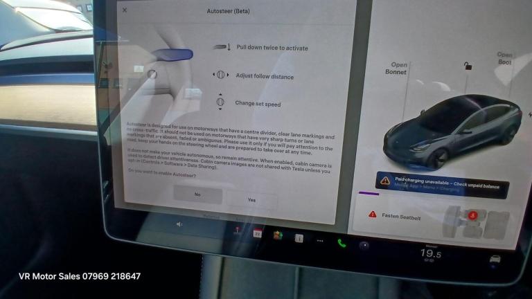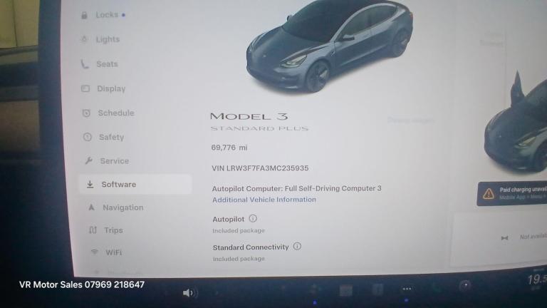 This 2021 Tesla Model 3 Standard Range Plus boasts a full service history and has had only one owner from new, with a clear vehicle history check. This electric vehicle features a 53 kWh battery offering a maximum range of 278 miles when new. Charging is convenient, with a full charge at home taking approximately 7 hours and 10 minutes using a 7kW charger, and a rapid charge to 80% possible in just 29 minutes at a public charging station. The car comes with a 3 month warranty for peace of mind.The Model 3 Standard Range Plus is equipped with impressive technology, including Enhanced Autopilot and Full Self-Driving Capability, alongside inductive charging mats for two smartphones. Comfort is assured with 12 way power adjustable front and rear heated seats and LED headlights. The large boot space provides ample storage, making it a practical choice. These features collectively demonstrate a superior offering compared to other vehicles in its class.