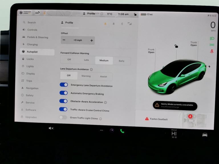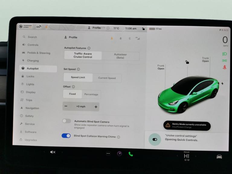 Experience the future with this blue Tesla Model 3. Enjoy a panoramic roof and sunroof for an airy, open feel. Relax in heated leather seats and breeze through journeys with adaptive cruise control, active lane assist, and blind spot assist. The intuitive keyless entry, reversing camera, and park assist make every drive easy, while LED headlights light the way. Stay connected with onboard WiFi and find your destination effortlessly with the integrated sat nav. This all-electric saloon sets a new standard for comfort and innovation. 1 service recorded, last serviced on 19/12/2025 at 40,390 miles. MOT to 23/12/2026. Visit our website for service history, online valuation, full vehicle specification plus multiple images. This vehicle is VAT qualifying. Any feature/option specified here is from 3rd party data. We cannot guarantee the accuracy of any specification supplied by a 3rd party. We recommend that you physically check the specification of the vehicle on site prior to purchase. This information does not form part of the buying contract. Terms & Conditions apply. We have over 2,000 cars available from our 10 national branches, check our website to see all our stock. Our Trustpilot rating is 4.4/5 with over 9,000 reviews.