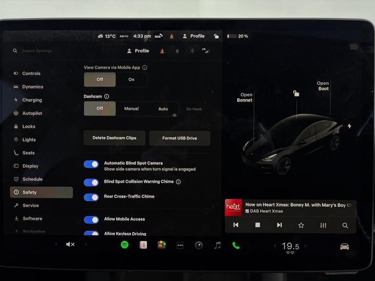 Experience the future with this black Tesla Model 3. Enjoy the open road with its panoramic roof and sunroof, while adaptive cruise control and active lane assist make every journey effortless. Navigate with confidence using surround view cameras, park assist, and blind spot assist. Stay comfortable with heated seats and a driver electric seat, and stay connected with onboard WiFi and sat nav. Keyless entry and LED headlights complete this attractive electric saloon. 1 service recorded, last serviced on 23/12/2025 at 13,310 miles. MOT to 01/01/2027. Visit our website for service history, online valuation, full vehicle specification plus multiple images. Any feature/option specified here is from 3rd party data. We cannot guarantee the accuracy of any specification supplied by a 3rd party. We recommend that you physically check the specification of the vehicle on site prior to purchase. This information does not form part of the buying contract. Terms & Conditions apply. We have over 2,000 cars available from our 10 national branches, check our website to see all our stock. Our Trustpilot rating is 4.4/5 with over 9,000 reviews.