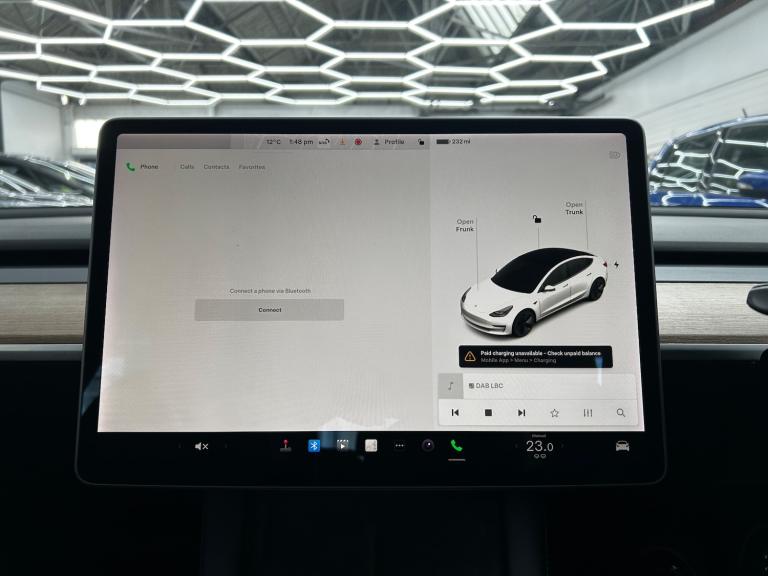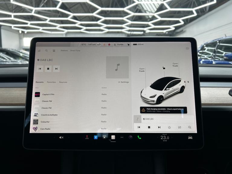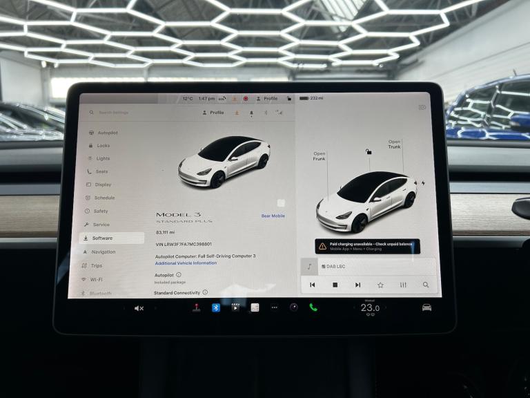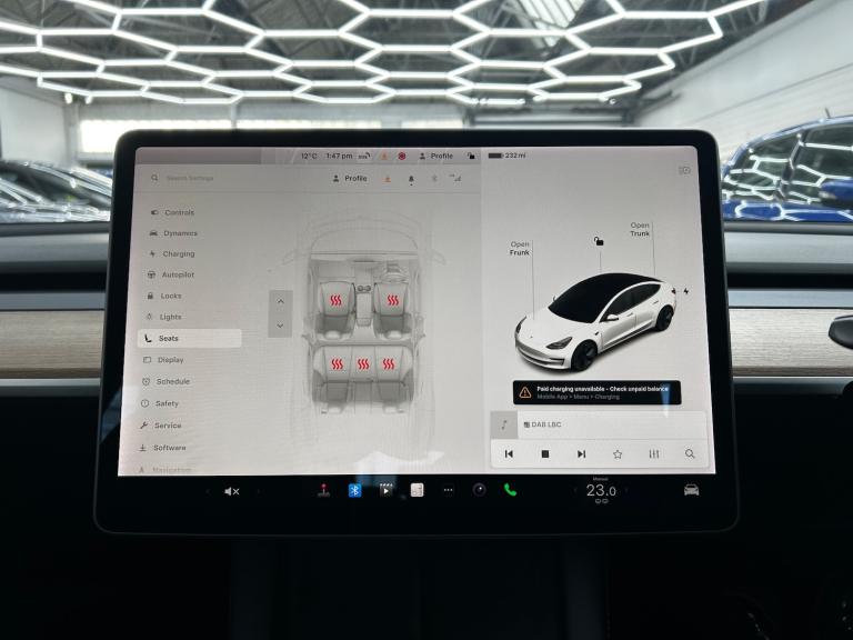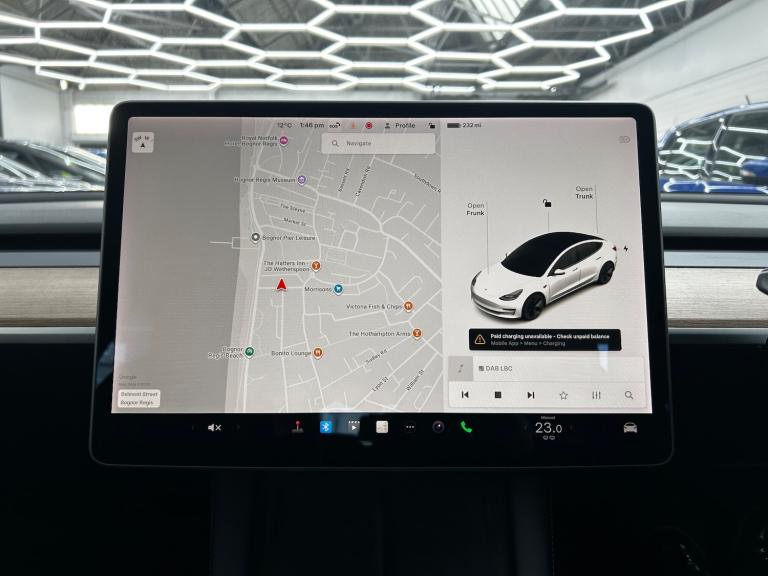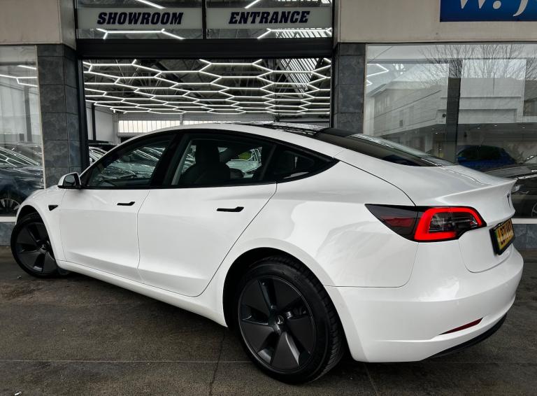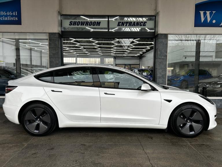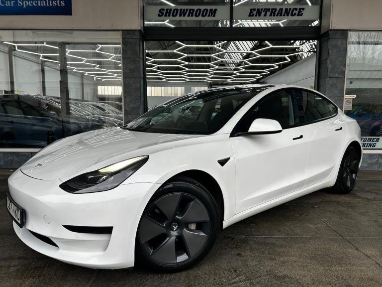 W Jones of Bognor are delighted to present this lovely Tesla Model 3 Standard Range Plus Auto 4dr. Across all our stock, we ensure servicing is up to date and provide a new 12 month MOT. This Tesla remains under Tesla Battery & Drive Unit Warranty till 11/12/2029 or 100,000 miles. As we are an AA Approved dealership, all vehicles come with 12 months AA breakdown cover free of charge. We are partnered with one of the largest finance brokers in the country, Evolution Funding, in order to cater to all deal sizes and credit ratings, on both HP and PCP. Unsure if you'll be accepted? We can soft search your credit profile to check how likely you are to be accepted! W Jones is a family run business, founded in 1902 and currently run by a 5th generation Jones. We have an indoor showroom facility and also a workshop, for MOTs, servicing and repairs. If you have any questions please do not hesitate to get in touch. Features Include: , 12-way power adjustable front and rear heated seats, 12-way power adjustable heated front seats, 2 zone climate control, air conditioning, centre console with storage - 4 usb ports and docking for 2 smartphones, electrically adjustable drivers seat, electrically adjustable passenger seat, electrically adjustable steering column - tilt-telescopic, front armrest, front head restraints, graphite finish seat controls, height adjustable drivers seat, interior carpeting, interior floor mats, map and reading lights, matt finish trim, metalised scroll wheels - steering wheel, powerlift trunk, premium seat material and trim, rear headrests, satin black sill plates, seats - heated front, software updates over wifi, steering wheel mounted controls, telephone, 18in alloy wheels - aero, auto dimming - power folding - heated side mirrors, body coloured bumpers, electric hinged side doors - front, electric hinged side doors - rear, exterior satin black, fixed panoramic glass roof, front electric windows, rear electric windows, tinted glass roof with ultraviolet and infrared protection, 3x3 point rear seat belts, abs - anti-lock braking system, adaptive steering, airbags - curtain, airbags - driver, airbags - passenger, airbags - side, automatic emergency braking, front cross traffic camera, isofix child seat anchor points, keyless go, rear cross traffic camera, remote central locking, reverse parking aid, steer-by-wire technology, traction control, adaptive cruise control, autopilot function, blind spot information, collision avoidance, custom