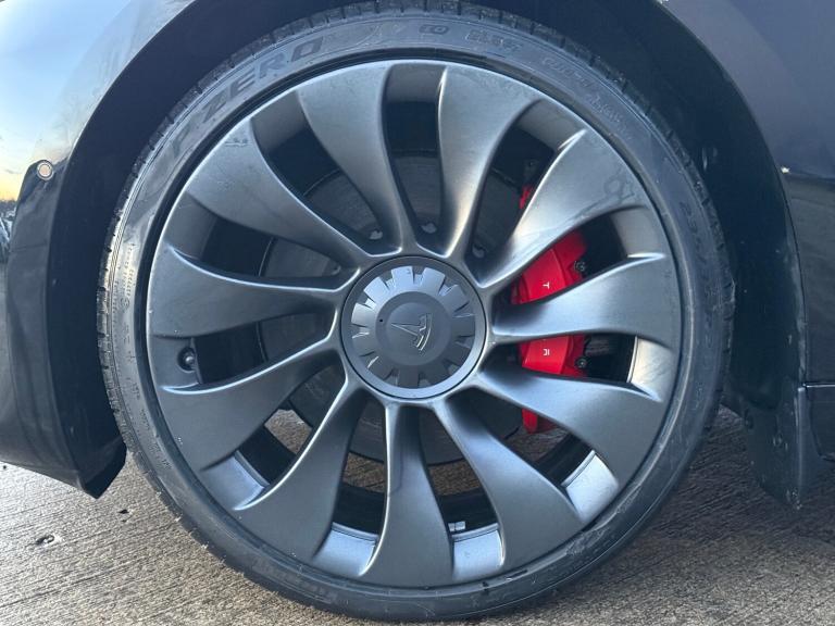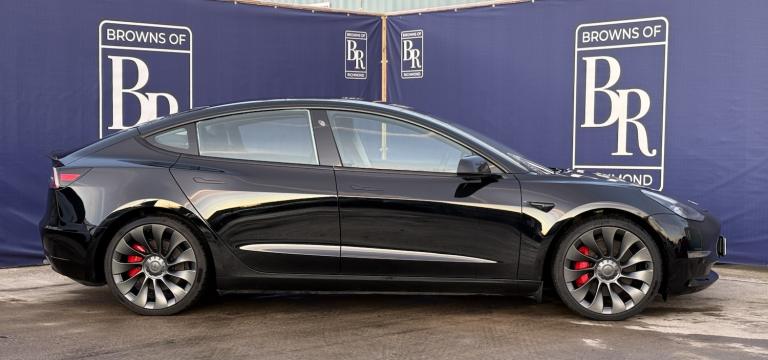 Browns of Richmond are proud to present the Tesla Model 3 Performance – the ultimate expression of electric performance.The Model 3 has long been the benchmark for EVs, and the Performance variant takes it to another level. Equipped with a 75kWh battery and dual high-output motors, it delivers breathtaking acceleration – 0–60 mph in just over 3 seconds. Distinctive features include a carbon-fibre rear spoiler, 20-inch Uber Turbine alloy wheels, and gloss red performance brake calipers, all underscoring its sporting credentials.Despite its incredible speed, efficiency remains a Tesla hallmark. The Performance model offers a real-world range of over 200 miles, stretching to around 250 miles in ideal conditions. Finished in sleek Solid Black, this car exudes sophistication, perfectly complemented by its grey wheels and red calipers. The combination of understated colour and bold performance styling makes this Model 3 a true head-turner.This facelifted Performance model benefits from key upgrades introduced during the refresh, including improved build quality, a heat pump for greater efficiency, double-glazed windows for reduced road noise, and a redesigned centre console with integrated wireless charging. Inside, the minimalist cabin is packed with cutting-edge technology. Navigation is effortless – input a destination and the system calculates your route, charging stops, and estimated arrival battery level. The AMD Ryzen processor ensures faster, smoother screen performance, making every interaction seamless.Sold with the remainder of Tesla’s 4-year/50,000-mile warranty and its 8-year/120,000-mile battery and drivetrain warranty, plus a full 114-point inspection completed for total peace of mind.Contact Browns of Richmond today to arrange a test drive or learn more.The advertised price is plus a £199 fee for the Browns Signature Care Package. Click here for further details: [Website URL removed].