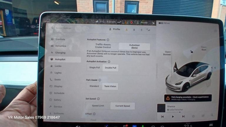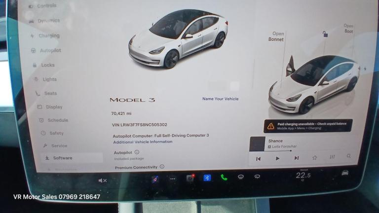 This 2022 Tesla Model 3 Standard Range Plus is a superb example, having had only one owner since new. As an electric vehicle, it boasts a 53 kWh battery offering a maximum range of 278 miles when fully charged. Recharging at home using a 7kW charger takes approximately 7 hours and 10 minutes, while rapid public charging can take you from empty to 80% in just 29 minutes. This Model 3 comes equipped with desirable features including 2 Zone Climate Control, Bluetooth connectivity for seamless audio and calls, and Adaptive Cruise Control for a more relaxed driving experience. You'll also benefit from bright LED Headlights and a helpful Park Assist Camera to aid with manoeuvring.The generous boot space in this Tesla Model 3 provides ample room for luggage, shopping, or sports equipment, making it a practical choice for everyday use and longer journeys. Its electric powertrain ensures a smooth and quiet ride, and the advanced technology integrated throughout the cabin enhances both comfort and convenience. The combination of its impressive electric range, rapid charging capabilities, and thoughtful features positions this Model 3 as an excellent alternative to traditional petrol or diesel cars.