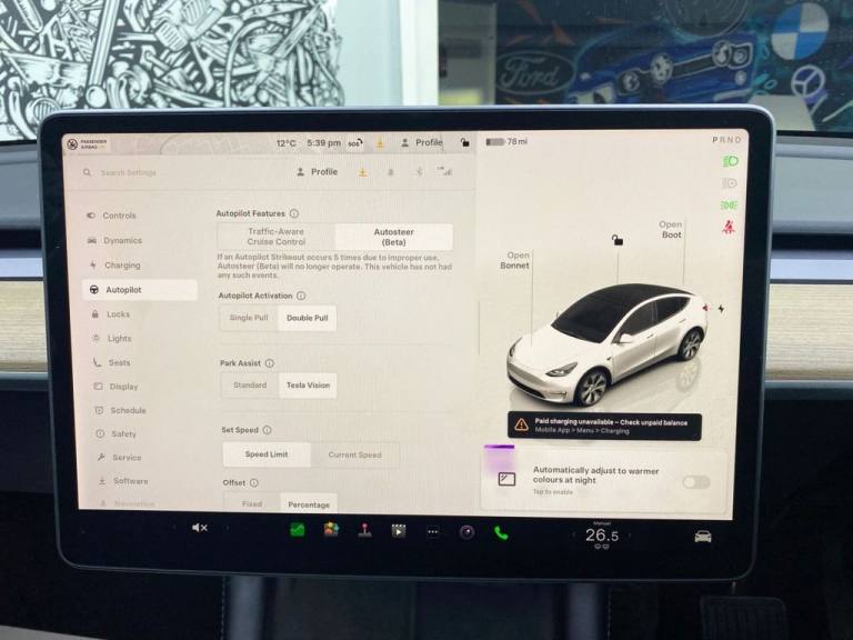 This 2022 Tesla Model Y Long Range boasts a clear vehicle history and has had only one owner since new, offering peace of mind. As a fully electric, four wheel drive vehicle, it features an 85 kWh battery providing an impressive maximum range of 331 miles when new. Charging at home on a 7kW charger takes approximately 12 hours, while rapid public charging can replenish the battery from empty to 80% in just 25 minutes. This Model Y is also equipped with heated rear seats, a heated steering wheel, LED headlights, and an expansive glass roof with ultraviolet and infrared protection. Its MOT is valid until September 2026. The performance of this Tesla Model Y Long Range is a key highlight, with an acceleration of 0 to 60 miles per hour in a swift 4.8 seconds, demonstrating its dynamic capability. The substantial 331 mile maximum range further sets it apart, offering considerable freedom for journeys. These attributes, combined with its electric drivetrain and advanced features like wireless phone charging, position this Model Y as a compelling choice for those seeking efficiency and modern technology in their next vehicle. Welcome to MotorTrustUK, where exceptional standards and customer satisfaction are at the forefront of our service. All of our retail vehicles undergo a rigorous 128-point mechanical inspection, independently carried out by a qualified AA technician, to ensure the highest level of reliability and safety. Should any vehicle have less than six months remaining on its MOT or be due a service, these requirements will be addressed prior to delivery. For added reassurance, we include a complimentary nationwide warranty with all qualifying vehicles. With approximately 1,500 vehicles currently in group stock, a number that continues to grow, we are pleased to offer part exchange services, accept all major credit and debit cards, and provide flexible finance options, including HP, PCP, and subprime solutions. Nationwide delivery can also be arranged by quotation. While every effort is made to ensure accuracy in vehicle specifications and descriptions, details may vary; we encourage all customers to speak with a member of our sales team to confirm key information such as MPG figures, available keys, or any factory modifications. To ensure smooth processing and support, an administrative fee is applied to all completed sales. We look forward to assisting you in finding your next vehicle with confidence at MotorTrustUK. .Premium Engineered Material - Black, Pearl White, 12-Way Power Adjustable Driver Seat with Lumbar Support, 15in Touchscreen with Onboard Maps and Navigation, 19in Alloy Wheels - Gemini Dark, 4 USB-C Port, ABS - Anti-lock Braking System, Airbags - Driver, Airbags - Passenger, All Vegan Interior, Ambient - Interior Lighting, Auto Dimming - Power Folding - Heated Side Mirrors, AutoPilot, Automated High-Beam Assist, Automatic Emergency Braking, Blind Spot Monitoring, Centre Console with Storage - 2 Cupholders and Armrest, Climate Control - Dual Zone, Collision Warning, Cupholders - 2x Rear Centre Armrest, Custom Driver Profiles, DAB+ Radio, Dashcam, Electric Assisted Front and Rear Door, Electronic Fold-Flat Seat Release 40/20/40 - Rear Seats, Expansive Glass Roof with Ultraviolet and Infrared Protection, Front Electric Windows, Glovebox Lockable with Illumination, HEPA Air Filtration System, Headlights - Automatic On, Heated Steering Wheel, Interior Floor Mats, Interior Trim - Open Pore Wood Decor, Keyless Driving and Keyless Entry, LED Foglights, LED Headlights, Map and Reading Lights, Music and Media via Bluetooth, Over-the-Air Updates, Power Adjustable Steering Column - Tilt-Telescopic, Power Lift Tailgate, Power Steering - Speed Sensitive, Premium Audio - 13 Speakers - 1 Subwoofer - 2 Amps and Immersive Sound, Rear View Mirror - Auto Dimming, Seats - Heated Front, Seats - Heated Rear, Sentry Mode, Software Updates over WIFI, Speed Limit Recognition, Sunvisors with Vanity Mirror and Illumination - Driver and Passenger, Tesla Mobile App, Type 2 Public Charging Connector, Tyre Pressure Monitoring System, USB-A in the Glovebox with a 128GB Portable Storage Device, Wipers - Rain Sensing, Wireless Phone Charging