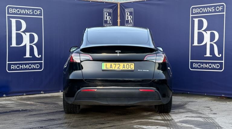 Browns of Richmond proudly presents the Tesla Model Y Long Range AWD – one of the most sought-after electric cars for sale in the UK and an exceptional choice for anyone ready to embrace the future of driving. This Long-Range model features a 75kWh battery and dual motors, delivering outstanding performance with a 0–60mph time of just over 4.5 seconds. Finished in Black and complemented by factory-fitted 20-inch Induction Alloy wheels in original Satin Black, it looks stunning. Inside, enjoy premium vegan leather, heated seats for all passengers and customisable settings saved to individual driver profiles. With a real-world range of 250–280 miles and charging costs as low as £5.25 on the right tariff, running costs average around 2p per mile – unbeatable for this level of technology and refinement. Built for efficiency and practicality, the Model Y combines everyday usability with cutting-edge innovation. Tesla's intuitive interface and app connectivity make charging and navigation effortless: simply enter your destination and the car calculates routes, charging stops, and arrival battery levels automatically. This vehicle benefits from Tesla's industry-leading 4-year 50,000-mile Vehicle and 8-year/120,000-mile battery and drivetrain warranty for complete peace of mind. It has also passed our rigorous 114-point inspection, ensuring it meets the highest standards before reaching its next owner. At Browns of Richmond, we're more than a dealership – we're EV specialists. Our team has been driving and living with electric vehicles for over a decade, giving us real-world experience that few can match. Whether it's charging advice, range tips, or helping you choose the right electric car for your lifestyle, we're here to guide you every step of the way. Contact us today to arrange a Tesla Model Y test drive or learn more – we'll make your transition to electric effortless and enjoyable. The advertised price is plus a £199 fee for the Browns Signature Care Package. Full details: [Website URL removed].