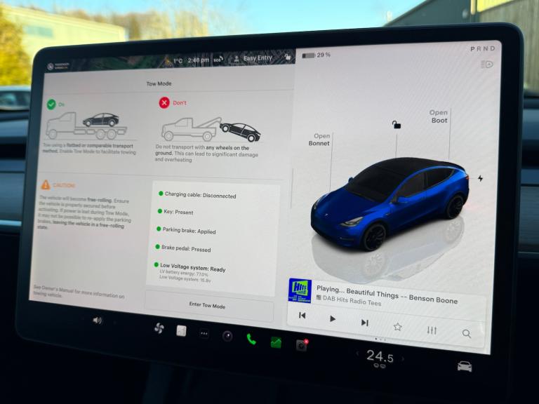 Browns of Richmond are proud to present the Tesla Model Y Long Range AWD – one of the most popular electric vehicles in the world, combining practicality, performance, and cutting-edge technology.This Long Range variant is fitted with Tesla’s larger 75kWh battery and dual motors, delivering exceptional capability and a thrilling 0–60 mph time of just 4.5 seconds. Plus, this example benefits from the factory-fitted Tow Hitch, which includes all the associated software updates to optimise towing performance – something aftermarket options simply cannot replicate. If that wasn’t enough, this car also features the rare Acceleration Boost upgrade, reducing the 0–60 time to just 4.2 seconds for an even more exhilarating drive.This Long Range offers a real-world range of over 250 miles, stretching to around 280 miles in ideal conditions. Charging costs can be as low as £5.25 for a full charge on the right tariff – that’s roughly 2p per mile, making this one of the most cost-effective premium EVs available.Finished in Deep Blue Metallic, this Model Y looks superb. Inside, you’ll find heated seats throughout and a cabin packed with advanced technology. Navigation is effortless -input a destination and the system calculates your route, charging stops, and estimated arrival battery level.This example has covered just 50,292 miles and still benefits from Tesla’s 8-year/120,000-mile battery and drivetrain warranty for complete peace of mind. To ensure it meets our exacting standards, we’ve completed our comprehensive 114-point inspection, so you can buy with confidence knowing this Model Y is one of the best examples available.At Browns of Richmond, we’re EV specialists with years of real-world experience. Whether you need advice on charging, range, or choosing the right EV for your lifestyle, we’re here to make your transition to electric effortless.Contact us today to arrange a test drive or learn more.The advertised price is plus a £199 fee for the Browns Signature Care Package. Click here for further details: [Website URL removed].