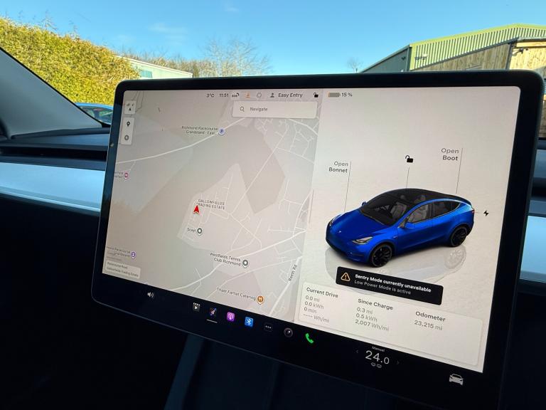 Browns of Richmond are proud to present the Tesla Model Y Performance – one of the most popular electric vehicles in the world and the ultimate blend of speed, practicality, and technology.The Performance variant takes the Model Y to another level. Equipped with a 75kWh battery and dual high-output motors, it delivers breathtaking acceleration – 0–60 mph in just over 3 seconds. Distinctive features include a carbon-fibre rear spoiler, 21-inch Überturbine alloy wheels, and gloss red performance brake calipers, all underscoring its sporting credentials.Despite its incredible speed, efficiency remains a Tesla hallmark. The Performance model offers a real-world range of well over 200 miles, stretching to around 250 miles in ideal conditions. Finished in Deep Blue, this Model Y looks sensational, especially paired with its striking alloy wheels and performance styling.Inside, this example boasts the premium black and white vegan leather interior upgrade, adding a luxurious and contemporary feel to the cabin. Almost every function is controlled via the central touchscreen, which works seamlessly with Tesla’s intuitive app. Navigation is effortless – input a destination and the system calculates your route, charging stops, and estimated arrival battery level. Designed for convenience and connectivity, Tesla’s network foresight remains second to none.This example has covered just 23,198 miles and still benefits from Tesla’s 4-year/50,000-mile vehicle warranty and its 8-year/120,000-mile battery and drivetrain warranty for complete peace of mind. To ensure it meets our exacting standards, we’ve completed our comprehensive 114-point inspection, so you can buy with confidence knowing this Model Y is one of the best examples available.At Browns of Richmond, we’re EV specialists with years of real-world experience. Whether you need advice on charging, range, or choosing the right EV for your lifestyle, we’re here to make your transition to electric effortless.Contact us today to arrange a test drive or learn more.The advertised price is plus a £199 fee for the Browns Signature Care Package. Click here for further details: brownsofrichmond.co.uk/browns-signature-care.