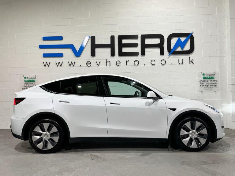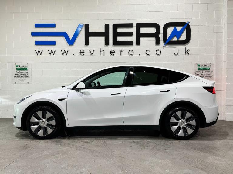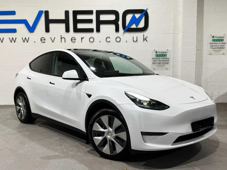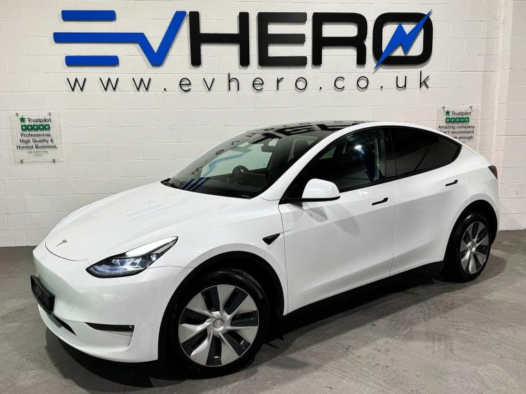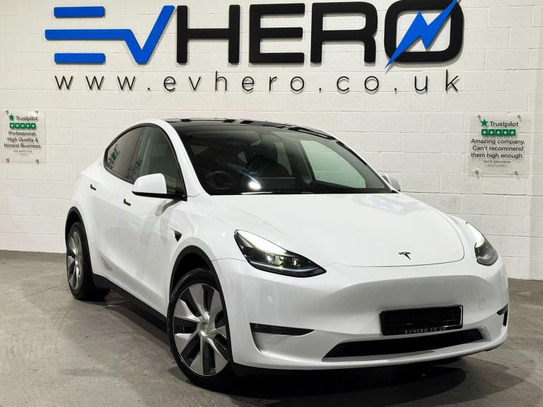 Just arrived at EVHERO is this stunning example of the Long Range Model Y. Beautiful condition with a Grade A battery health check report and lengthy Tesla Main dealer Main Battery and Drive Motors Warranty until 24/11/2030 for peace of mind. Still smells like a new car! VAT QUALIFYING FOR BUSINESS PURCHASERS BUT SAME PRICE FOR PERSONAL. Huge spec includes Netflix, AutoPilot, Active Cruise, Auto Adaptive LED High beam, Full 360 degree Dash Cam system, Full 5 heated seats, Heated steering wheel, heated windscreen, Double glazed windows for sound proofing, Massive luggage space, Careoke for a good sign along with the family, Near-field charging for two phones, Spotify, Apple Music, Audible and podcast apps. Google Mapping with live updates and streaming to the vehicle with premium connectivity subscription available. All original charging cables and first aid pack from Tesla with both Keys. These are the most magnificent cars to own and run and require very little servicing and are incredibly cheap and easy to own and drive with stacks of safety features. Please do email or call for an informative and expert chat about Tesla and other Electric vehicles as EVHERO are the specialists.