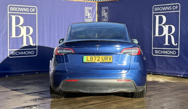 Browns of Richmond are proud to present the Tesla Model Y Performance – one of the most popular electric vehicles in the world and the ultimate blend of speed, practicality, and technology.The Performance variant takes the Model Y to another level. Equipped with a 75kWh battery and dual high-output motors, it delivers breathtaking acceleration – 0–60 mph in just over 3 seconds. Distinctive features include a carbon-fibre rear spoiler, 21-inch Überturbine alloy wheels, and gloss red performance brake calipers, all underscoring its sporting credentials.Despite its incredible speed, efficiency remains a Tesla hallmark. The Performance model offers a real-world range of well over 200 miles, stretching to around 250 miles in ideal conditions. Finished in Deep Blue, this Model Y looks sensational, especially paired with its striking alloy wheels and performance styling.Inside, this example boasts the premium black and white vegan leather interior upgrade, adding a luxurious and contemporary feel to the cabin. Almost every function is controlled via the central touchscreen, which works seamlessly with Tesla’s intuitive app. Navigation is effortless – input a destination and the system calculates your route, charging stops, and estimated arrival battery level. Designed for convenience and connectivity, Tesla’s network foresight remains second to none.This example has covered just 23,198 miles and still benefits from Tesla’s 4-year/50,000-mile vehicle warranty and its 8-year/120,000-mile battery and drivetrain warranty for complete peace of mind. To ensure it meets our exacting standards, we’ve completed our comprehensive 114-point inspection, so you can buy with confidence knowing this Model Y is one of the best examples available.At Browns of Richmond, we’re EV specialists with years of real-world experience. Whether you need advice on charging, range, or choosing the right EV for your lifestyle, we’re here to make your transition to electric effortless.Contact us today to arrange a test drive or learn more.The advertised price is plus a £199 fee for the Browns Signature Care Package. Click here for further details: [Website URL removed].
