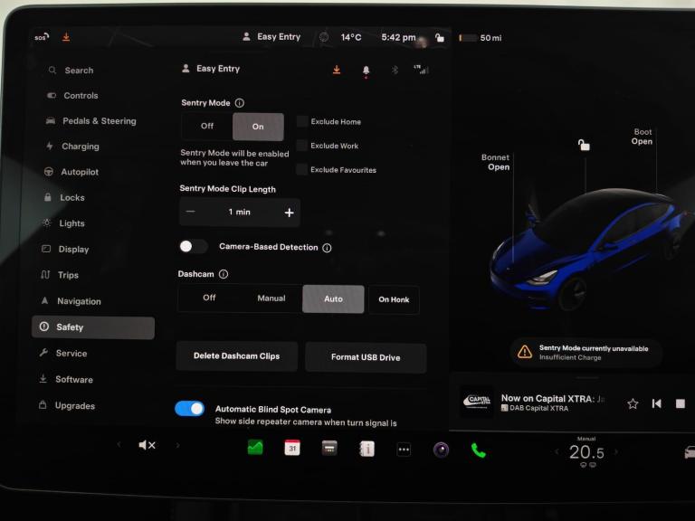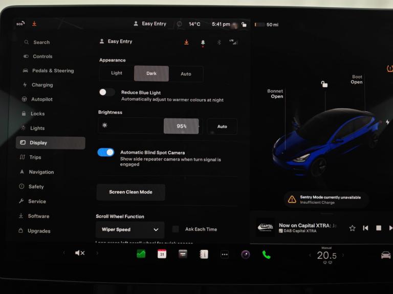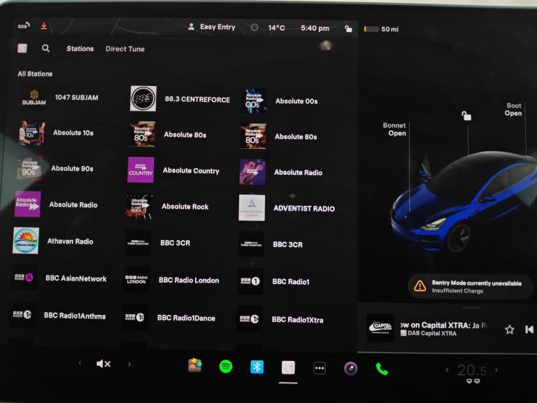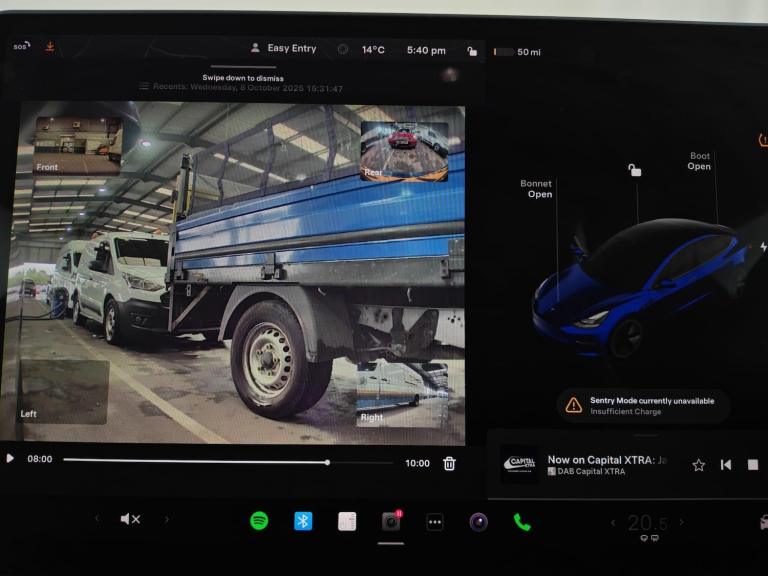 This 2023 Tesla Model 3 Long Range presents a superb ownership opportunity, having had only one owner from new with a clear vehicle history check. As an electric vehicle, it boasts a substantial 78 kWh battery offering a maximum range of 394 miles, ensuring fewer stops on longer journeys. Charging is convenient, taking approximately 12 hours at home using a 7kW charger, while rapid public charging can replenish the battery from empty to 80% in just 25 minutes. Notable features include a dual wireless phone charger, pre conditioning for comfort, blind spot warning for enhanced safety, unlock on park functionality, and speed assist.The Long Range variant of the Model 3 is designed to impress, and this particular example stands out with its impressive 394 mile maximum range, a key advantage over many other electric vehicles. You'll also appreciate the generous boot space, providing ample room for luggage or shopping. These highlights demonstrate the superior capability and practicality of this Tesla Model 3, making it an excellent choice for those seeking an advanced and efficient electric car.