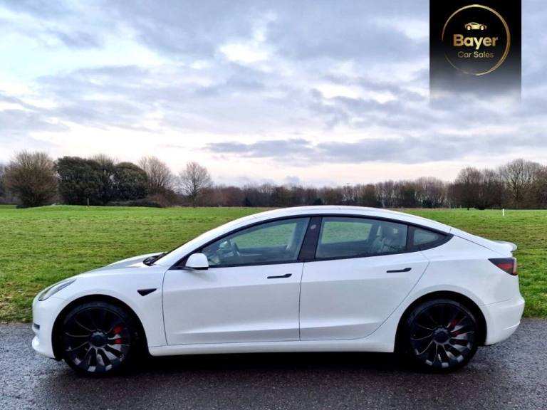 VAT QUALIFYING! 1 OWNER - ONE OF THE VERY LAST PERFORMANCES This 2023 Tesla Model 3 Performance is a superb example, having had only one owner since new. As an electric vehicle, it boasts a four wheel drive drivetrain and a substantial 82 kWh battery, offering a maximum range of 340 miles when fully charged. Recharging at home on a 7kW charger will take approximately 12 hours, while rapid public charging can take you from empty to 80% in as little as 26 minutes. This Model 3 comes equipped with desirable features including air conditioning, keyless entry with app control, blind spot information, Bluetooth connectivity, and heated rear seats for added comfort. The Performance variant truly shines with its exhilarating acceleration, achieving 0 to 60 miles per hour in just 3.1 seconds. This impressive performance metric demonstrates a significant advantage over many other vehicles in its class. The combination of its electric powertrain, advanced technology, and the exclusive provenance of a single owner makes this 2023 Tesla Model 3 Performance a compelling choice for those seeking a dynamic and efficient driving experience. A little bit about us and how we work. We are a family business who have been supplying main dealerships for over 20 years. We have a very good supply of used cars that are in the main purchased directly from large PLC companies or main dealerships. We operate on a high turnover and small margin making our vehicles the best priced in the current market. With this in mind we don?t discount as we simply don?t have big margins to do so but more the fact we prefer to be completely transparent and believe everyone deserves to be offered the same great prices. We operate on an appointment basis so we can ensure the vehicle is ready. Please give us a call and pop in for a coffee..12-Way Power Adjustable Front and Rear Heated Seats, 15in Touchscreen with Onboard Maps and Navigation, 2 Zone Climate Control, 20in Alloy Wheels - Uberturbine, 3x3 Point Rear Seat Belts, 60-40 Split Folding Rear Seats, ABS - Anti-lock Braking System, Adaptive Cruise Control, Adaptive Steering, Additional USB-A Port - Glove Compartment, Air Conditioning, Airbags - Curtain, Airbags - Driver, Airbags - Passenger, Airbags - Side, Aluminium Alloy Pedals, Ambient - Interior Lighting, Audio Remote Control, Auto Dimming - Power Folding - Heated Side Mirrors, Automated High-Beam Assist, Automatic Emergency Braking, Autopilot Function, Blind Spot Information, Bluetooth Connection, Body Coloured Bumpers, Carbon Fibre Spoiler, Centre Console with Storage - 4 USB Ports and Docking for 2 Smartphones, Collision Avoidance, Custom Driver Profiles, Daytime Running Lights - LED, Digital Radio, DVD, Electric Hinged Side Doors - Front, Electric Hinged Side Doors - Rear, Electrically Adjustable Drivers Seat, Electrically Adjustable Passenger Seat, Electrically Adjustable Steering Column - Tilt-Telescopic, Electronic Stability Control and Traction Control, Exterior Satin Black, Fixed Panoramic Glass Roof, Front Armrest, Front Cross Traffic Camera, Front Electric Windows, Front Head Restraints, Graphite Finish Seat Controls, Heat Pump, Heated Steering Wheel, Height Adjustable Drivers Seat, In-Car Internet Streaming Music and Media, Inductive Charging Mats - Two Smartphones, Interior Carpeting, Interior Floor Mats, Internet Browser, Internet Connection, Isofix Child Seat Anchor Points, Keyless Entry and Remote Control with App, Keyless Go, Lane Departure Warning, LED Foglights, LED Headlights, Location-Aware Automatic Garage Door Opener, Map and Reading Lights, Matt Finish Trim, Media Storage, Metalised Scroll Wheels - Steering Wheel, Mobile Phone App Interface, Navigation System, Non-Safety-Critical Software Updates over Cellular, OEM Sound System, Park Assist Camera, Pearl White, Performance Brake Calipers, Power Steering - Speed Sensitive, Powerlift Trunk, Premium Audio - 14 Speakers - 1 Subwoofer - 2 Amps and Immersive Sound, Premium Engineered Material - Black, Radio - AM-FM - Internet Streaming, Rear Cross Traffic Camera, Rear Electric Windows, Rear Headrests, Rear Light - LED, Rear Taillights - LED, Remote Central Locking, Satellite-View Maps with Live Traffic Visualisation and Navigation, Satin Black Sill Plates, Seat Belt Reminders, Seats - Heated Front, Seats - Heated R