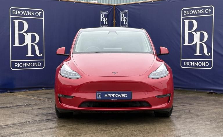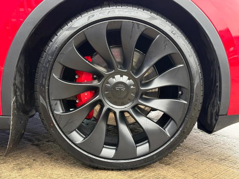 Browns of Richmond are proud to present the Tesla Model Y Performance – one of the most popular electric vehicles in the world and the ultimate blend of speed, practicality, and technology.The Performance variant takes the Model Y to another level. Equipped with a 75kWh battery and dual high-output motors, it delivers breathtaking acceleration – 0–60 mph in just over 3 seconds. Distinctive features include a carbon-fibre rear spoiler, 21-inch Überturbine alloy wheels, and gloss red performance brake calipers, all underscoring its sporting credentials.Despite its incredible speed, efficiency remains a Tesla hallmark. The Performance model offers a real-world range of well over 200 miles, stretching to around 250 miles in ideal conditions. Finished in Tesla’s most premium colour – Multi-Coat Red – this Model Y looks sensational, especially paired with its grey wheels and matching red calipers.Almost every function is controlled via the central touchscreen, which works seamlessly with Tesla’s intuitive app. Navigation is effortless – input a destination and the system calculates your route, charging stops, and estimated arrival battery level. Designed for convenience and connectivity, Tesla’s network foresight remains second to none.This example has covered just 32,649 miles and still benefits from Tesla’s 4-year/50,000-mile vehicle warranty and its 8-year/120,000-mile battery and drivetrain warranty for complete peace of mind. To ensure it meets our exacting standards, we’ve completed our comprehensive 114-point inspection, so you can buy with confidence knowing this Model Y is one of the best examples available.At Browns of Richmond, we’re EV specialists with years of real-world experience. Whether you need advice on charging, range, or choosing the right EV for your lifestyle, we’re here to make your transition to electric effortless.Contact us today to arrange a test drive or learn more.The advertised price is plus a £199 fee for the Browns Signature Care Package. Click here for further details: [Website URL removed].