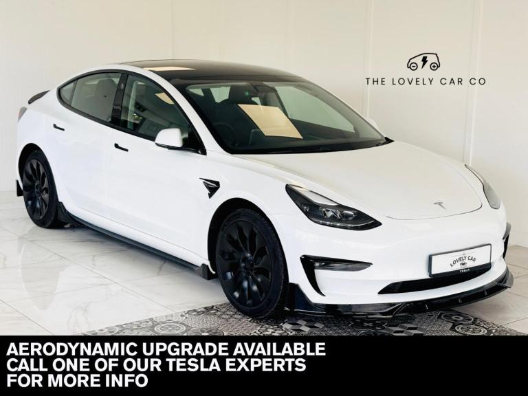 The Lovely Car Company are excited to offer this 2021 Tesla Model 3 in white. With its impressive performance and low running costs, this car is perfect for those looking for a reliable and affordable vehicle. This Tesla Model 3 comes equipped with a range of features, including, 360 degree cameras, Aerodynamic Body kit, heated electric seats, sat nav, and reversing aid. The panoramic glass roof provides a bright and airy feel to the interior, making it a pleasure to drive. One of the standout features of this car is its fantastic range of over 300 miles per full charge, making it ideal for those who want to reduce their carbon footprint without sacrificing performance. Plus, with its Electric engine, you'll enjoy lower running costs and reduced maintenance. At The Lovely Car Company, we understand that buying a car can be a significant investment, which is why we're happy to offer finance options with affordable monthly payments. Our experienced team will work with you to find a payment plan that suits your budget and lifestyle. All of our cars are prepared at our in-house garage, where they undergo a thorough inspection and preparation process to ensure they meet our high standards. This means you can drive away in confidence, knowing your new car has been carefully checked and maintained. If you're looking for a reliable, affordable, and environmentally friendly car, look no further than this 2021 Tesla Model 3. Contact us today to arrange a viewing and take the first step towards owning your dream car. You're welcome to visit us, but we recommend booking an appointment in advance, as many vehicles are kept off-site at our preparation centre. This is especially important at weekends. (£399 admin charge for arranging finance externally) Enhance the look with an optional Aero Bodykit upgrade. Speak to one of our Tesla experts for full details.