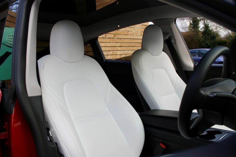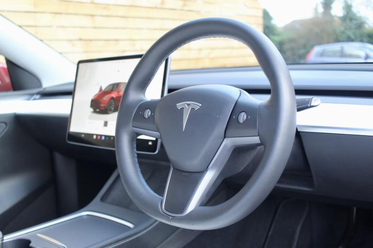 Strictly appointment only, 2025 Autotrader highly rated award winner, Low rate finance available, Nationwide delivery offered. UKI (Sudbury) Limited are pleased to offer this one owner 2022 (22) Tesla Model Y Long Range presented in Red multi coat. This Tesla Model Y is in fantastic condition throughout and comes with both charging cables and two key cards. There is an excellent specification on this Model Y which includes - Red multi coat paint, Adaptive headlights, 20"" Induction alloy wheels, Panoramic roof, Premium black and white interior, All seats heated, Heated steering wheel, Autopilot, Darkened rear glass, Front and rear parking sensors, All round cameras, Electric tailgate, Electric front seats with memory, Electric folding door mirrors, Video Streaming, Satellite navigation, Bluetooth telephone and media, Wireless phone chargers, Automatic lights and wipers, Automatic high beam assist, Premium audio, Heated front windscreen, Premium audio. All of our vehicles come with a Motorcheck history report, 3 months2,500 mile warranty (which ever comes first) and a minimum of 6 months MOT. We also offer extended warranties and ceramic paint protection at an additional cost, please ask our sales team for prices. We also except part exchanges, offer finance and can take payment via bank transfer. We do not accept debit or credit cards. UKI Sudbury Limited charge a £99 admin fee.