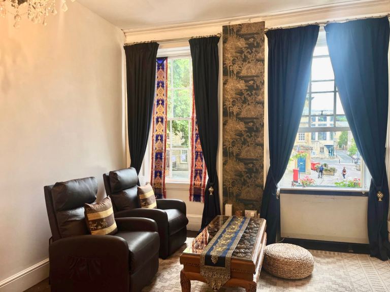 Thai Massage >>>Involve stretching and pulling the limbs and applying strong, rhythmical pressure to the body with the hands ,elbows, knees or foot . Focuses on manipulating Energy lines .