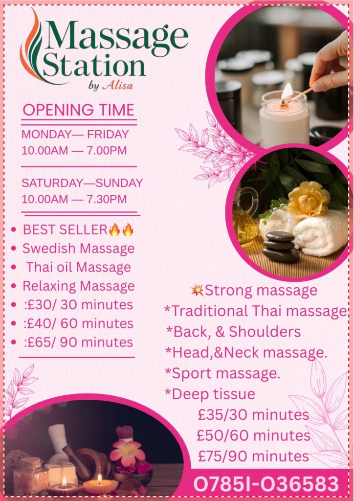 Relaxing Hot oil Massage, £50/1hr,£30/30m