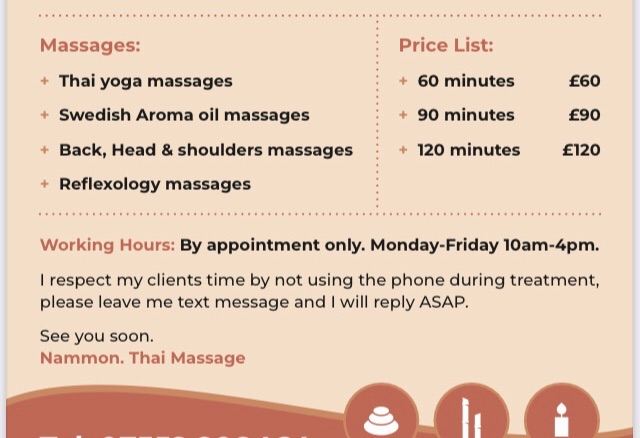 My name's Nammon. I have Thai massage qualifications from War Po school in Thailand.