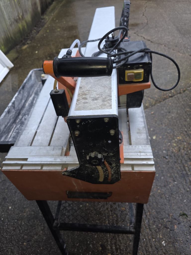 Very good working order and fully serviced tile saw on wheels. Measurements are 93cm by 46cm. The make is Versatile. Collection from SE12 0BL. Cash only.