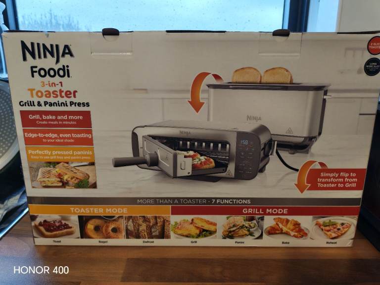 Ninja Foodi Toaster, Grill, and Panini Press in grey. Comes with original box.