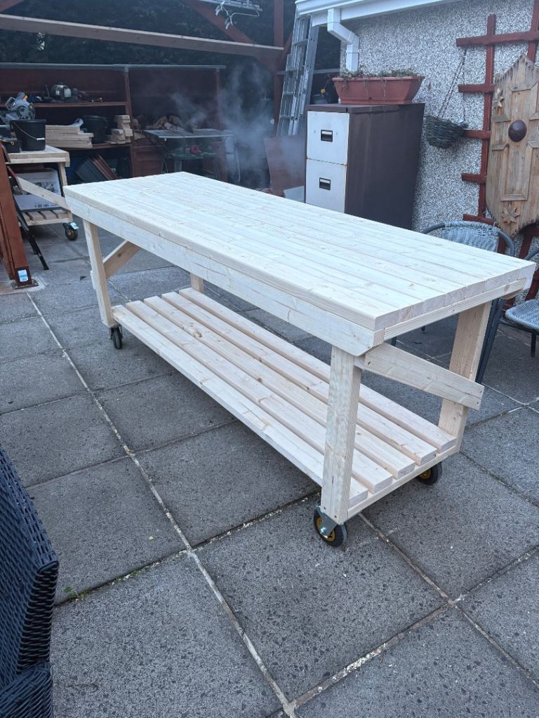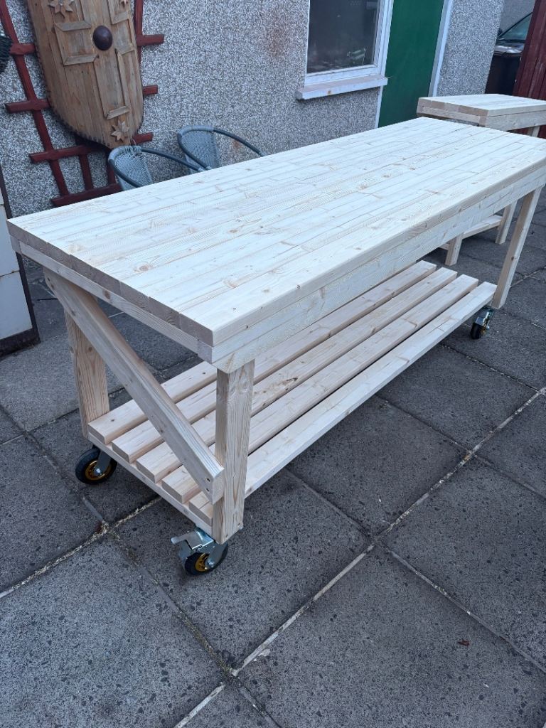 Each workbench is handcrafted with attention to detail, ensuring a sturdy construction and a natural finish that highlights the beauty of the wood.