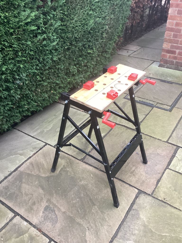 Black metal legs wooden tables top and only used twice ..don’t pay £29 at screwfix buy mine £15