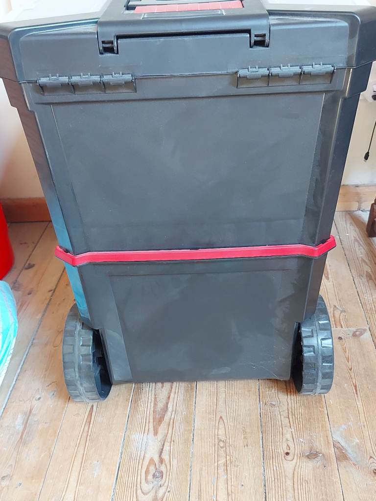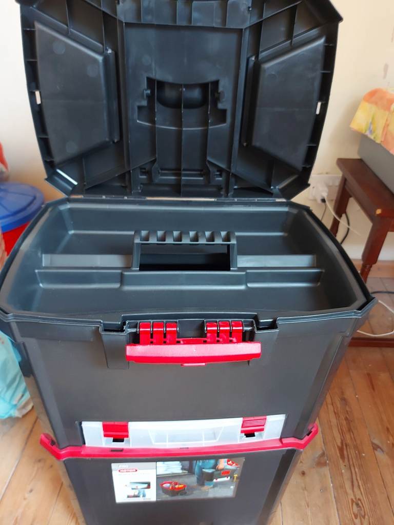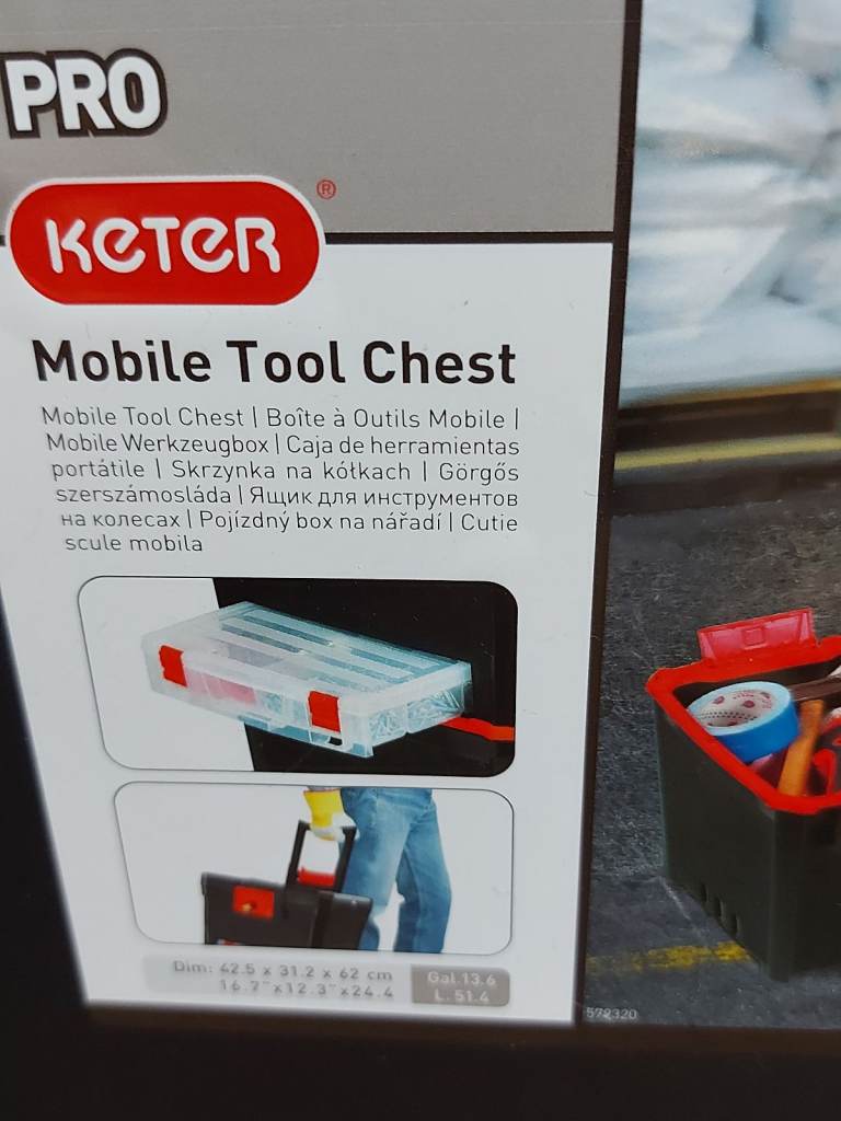 Pro keter mobile tool chest. Brand new not used at all. Various departments for storage and screws. Comes with wheels for easy movement.