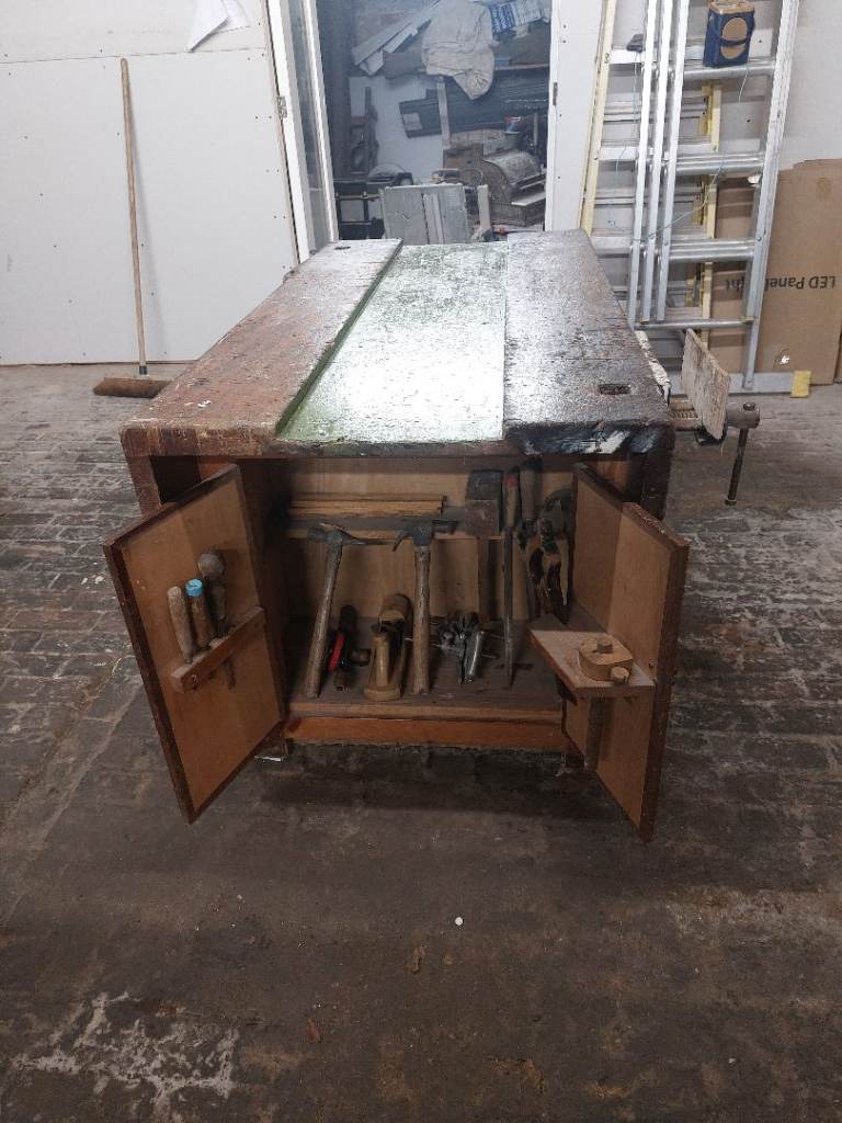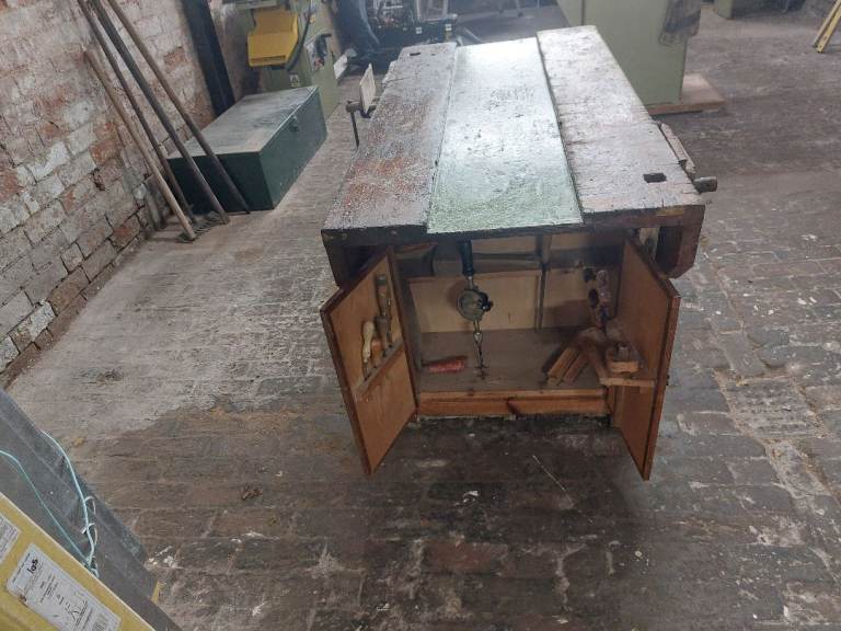 Posting for under a monthRetro school woodwork bench with selection of tools