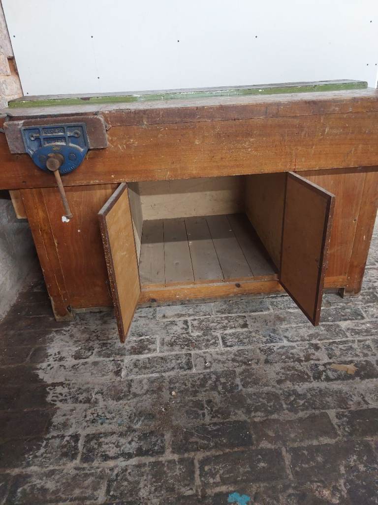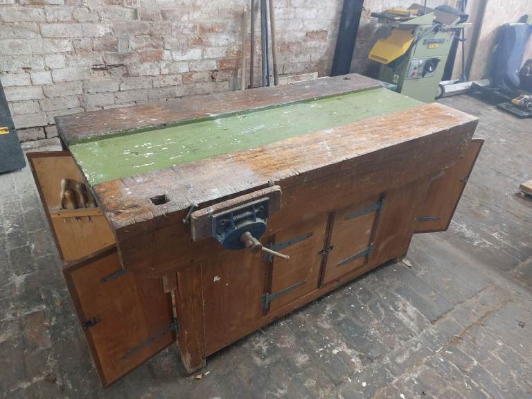 Original. 60s ,70s, workbench,age related marks, 2 no vices, stopblocks both ends.