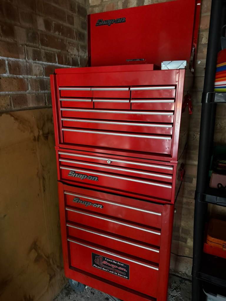 Snap on roll cab and tools, some of the tools are unused, owner worked for London Fire Brigade so all tools are used on trucks and or cars, tools include spanners, screwdrivers, socket sets, hammers and a range of other bits and bobs. All lockable and has keys.