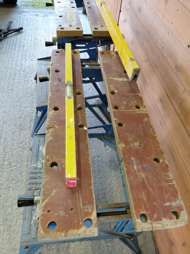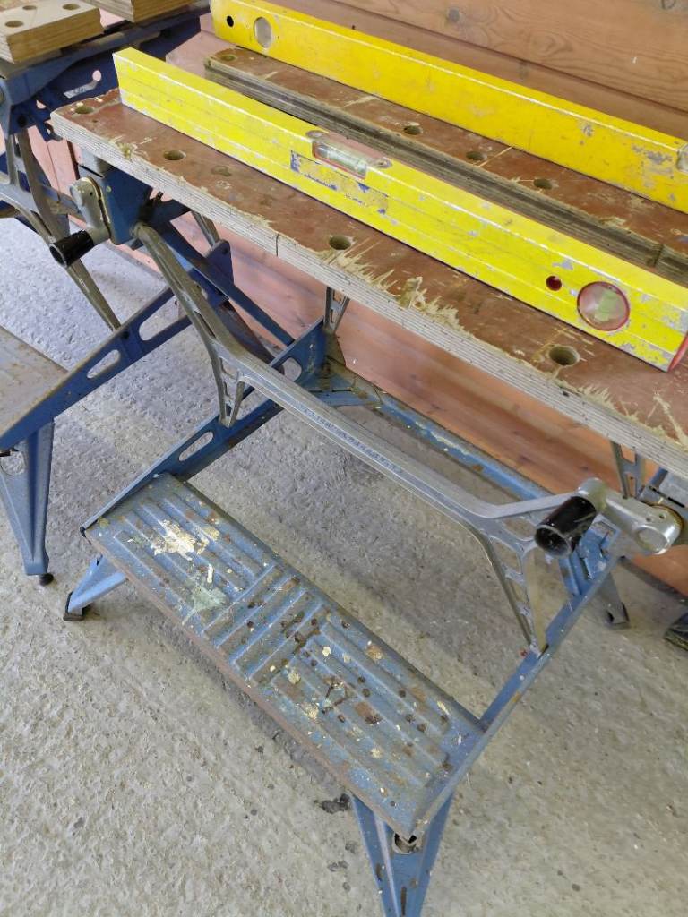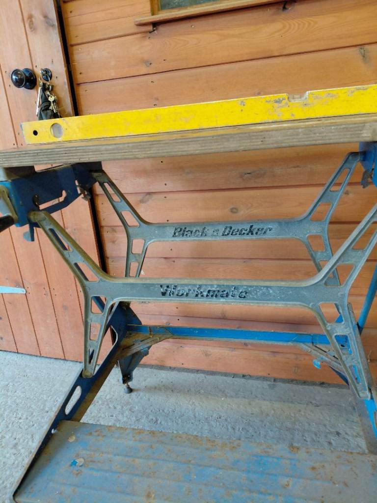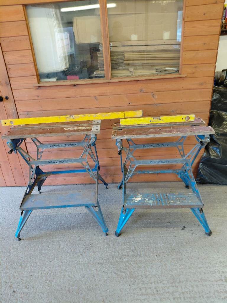 Two Black and Decker Workmates,sturdy old pieces,will need oil on the joints unused but dry stored for many years,included are two aluminium spirit levels