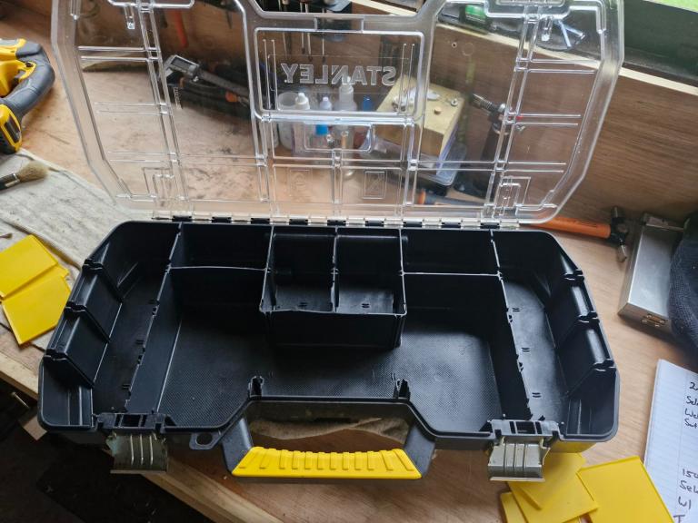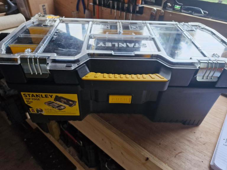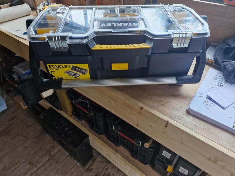 These Stanley Toolboxes come complete with a removeable top organiser. The tote is ideal for storing and carrying larger tools, whereas the organiser is perfect for small parts and accessories, such as screws and fixings.