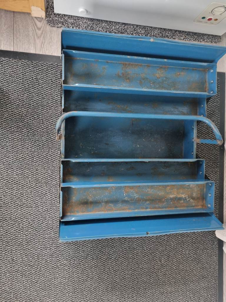 Large bottom storage space - 4 extending side cantilever storage trays. All Metal.
